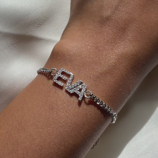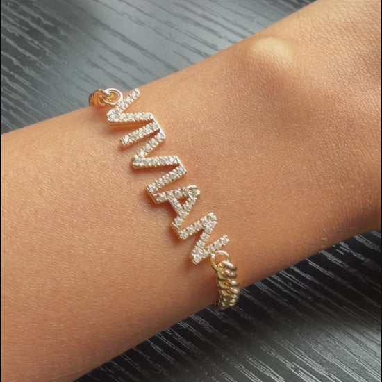 Introducing our Custom Diamond Name Curb Link Bracelet! Personalize it with your name and enjoy the elegance of the curb link design. This stylish piece is sure to be a cherished addition to your jewelry collection. Elevate your style with our Custom Diamond Name Curb Link Bracelet. This elegant diamond bangle bracelet offers a personalized touch with timeless sophistication.