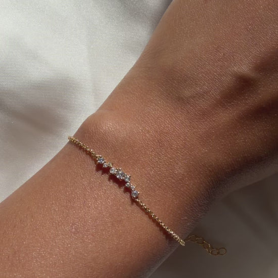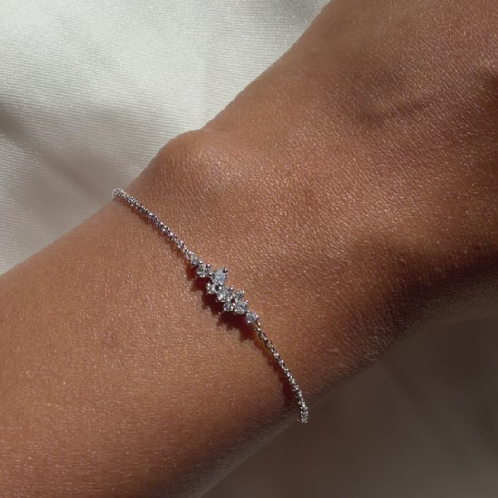 Introducing our stunning Diamond Cluster Cable Chain Bracelet. This exquisite piece features a beautiful cluster of sparkling diamonds, adding elegance and sophistication to any outfit. Treat yourself or someone special today!