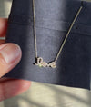 The Diamond Pave Love Necklace celebrates romance with elegant sparkle. Featuring the timeless 10mm "LOVE" script adorned with 0.20 carats of pave diamonds in solid gold, this piece delivers heartfelt symbolism with sophisticated brilliance. The meaningful word enhanced by one-fifth carat diamond coverage creates distinctive jewelry expressing affection with dazzling refined elegant style and romantic meaningful presence perfect for celebrating love with luxurious sparkling beauty and cherished romantic symbolic sentimental character expressing devotion beautifully.