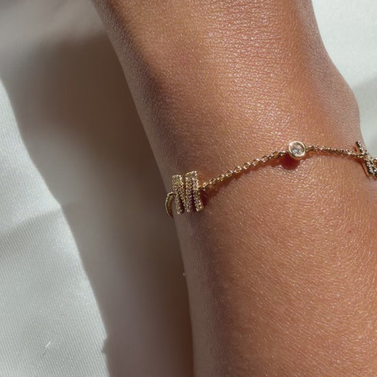 Discover the 3 Diamond Initials Cable Chain Bracelet—a stunning diamond bracelet for everyday jewelry. Perfect for a personalized touch. Our 3 Diamond Initials Cable Chain Bracelet, the perfect personalized accessory for any outfit! This stunning piece features three initials of your choice, each adorned with a sparkling diamond. The cable chain adds a touch of elegance to this timeless bracelet. Shop now!