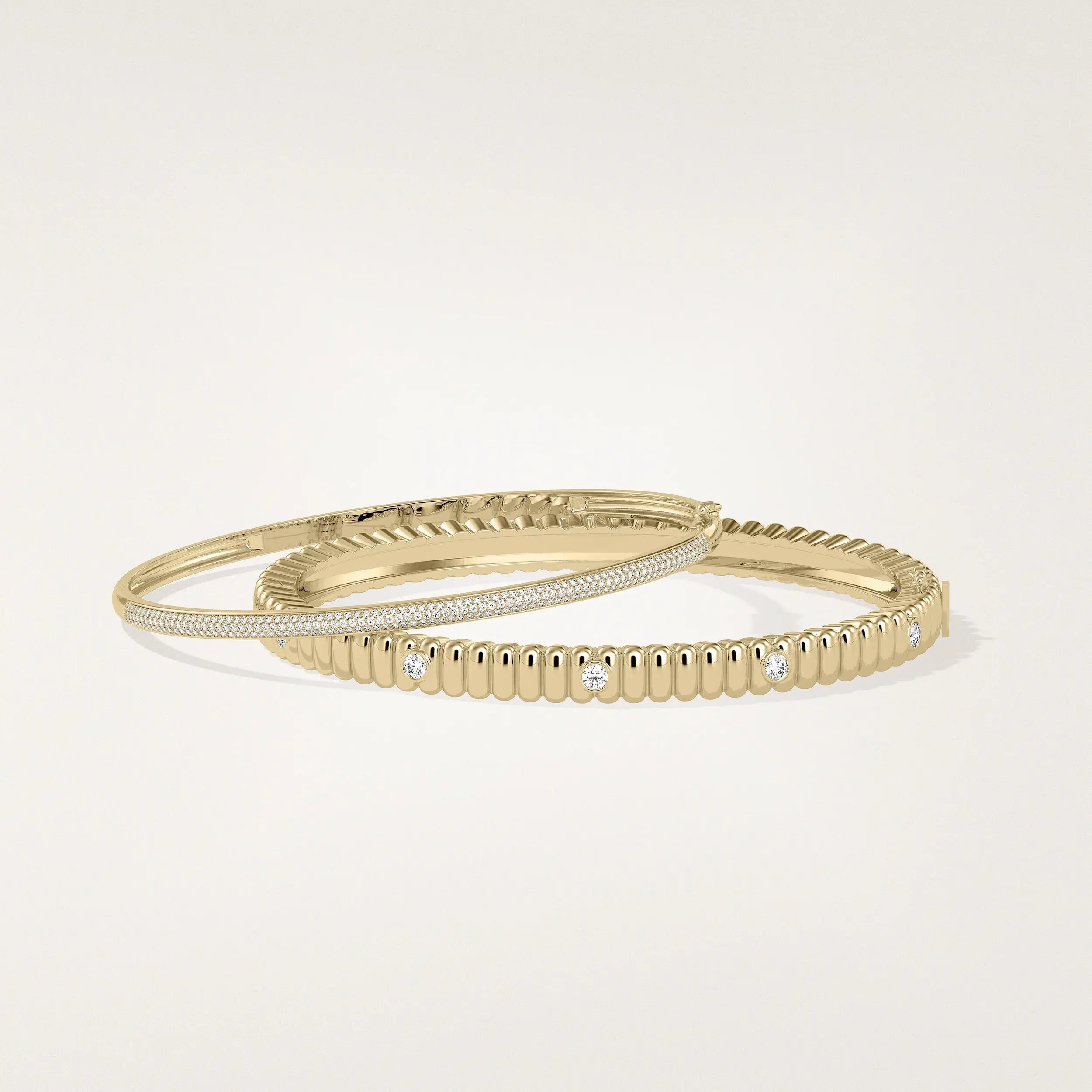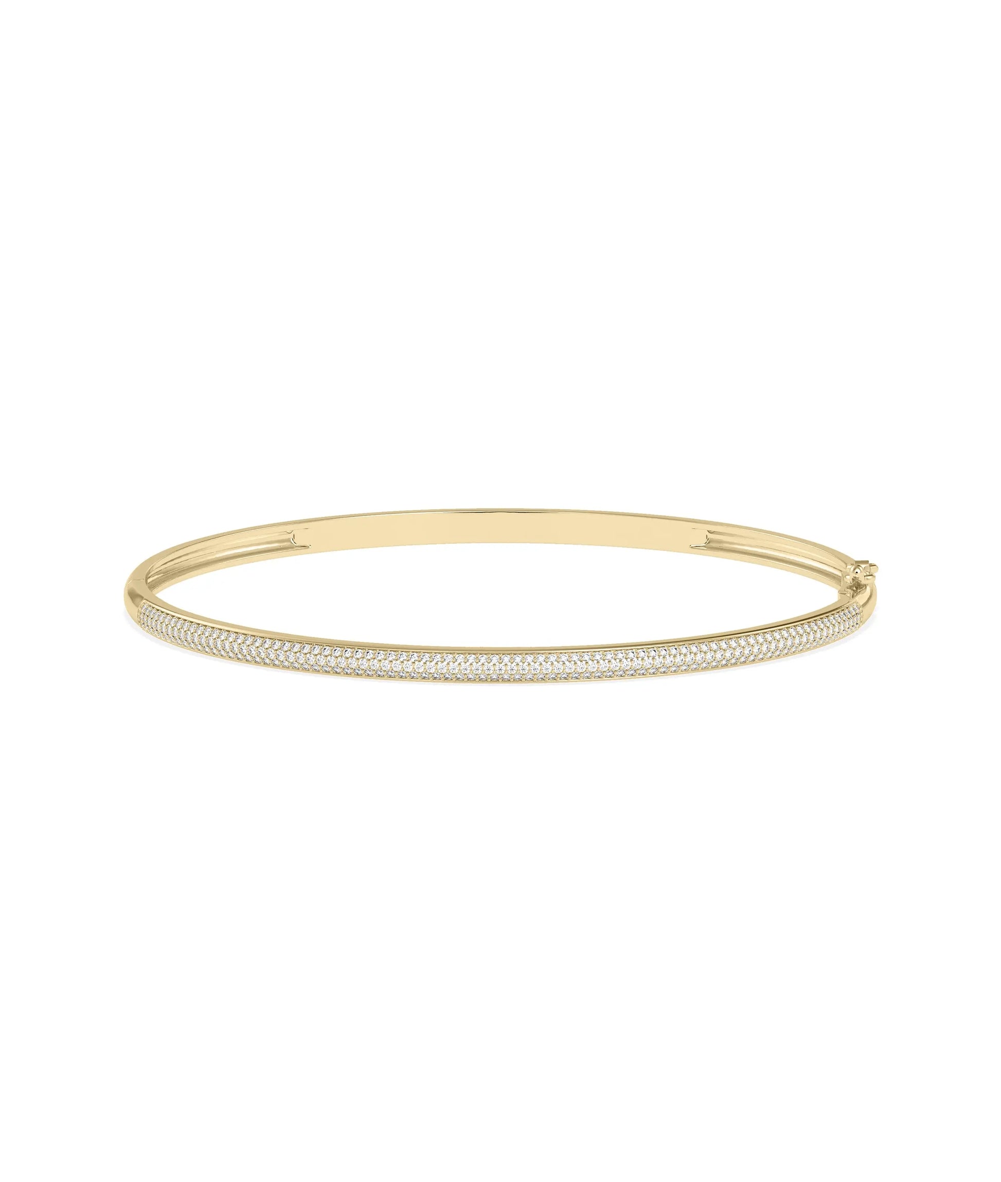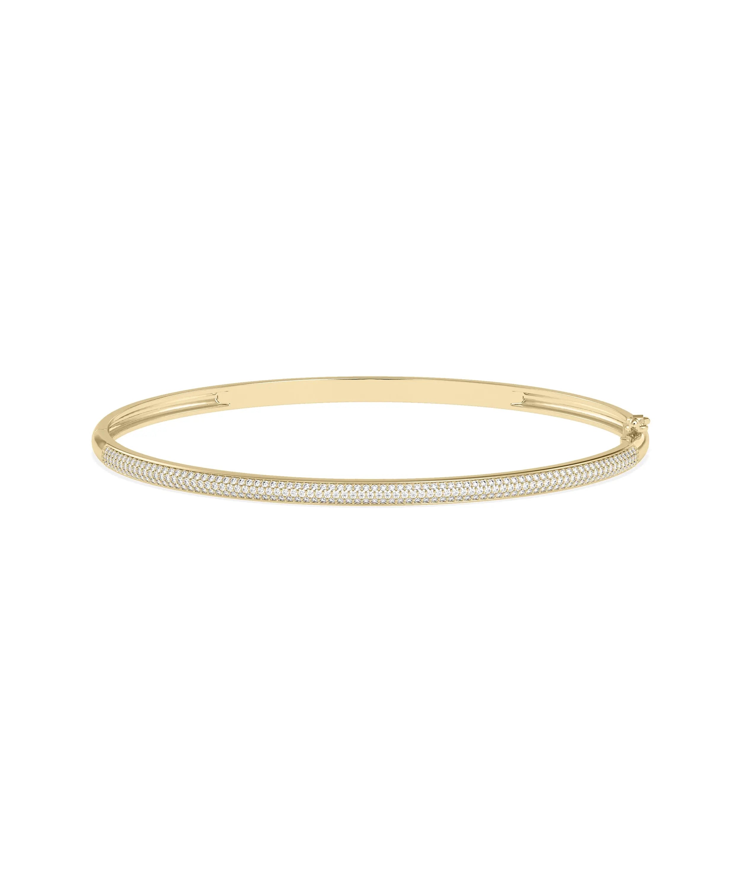 Discover the 3 Row Diamond Pave Bangle, a timeless piece of everyday jewelry. Shop elegant diamond bangles that add sparkle to any occasion. Adorned with shimmering pave diamonds, this elegant piece adds a touch of glamour to any outfit. Get ready to sparkle and shine with this stunning accessory!