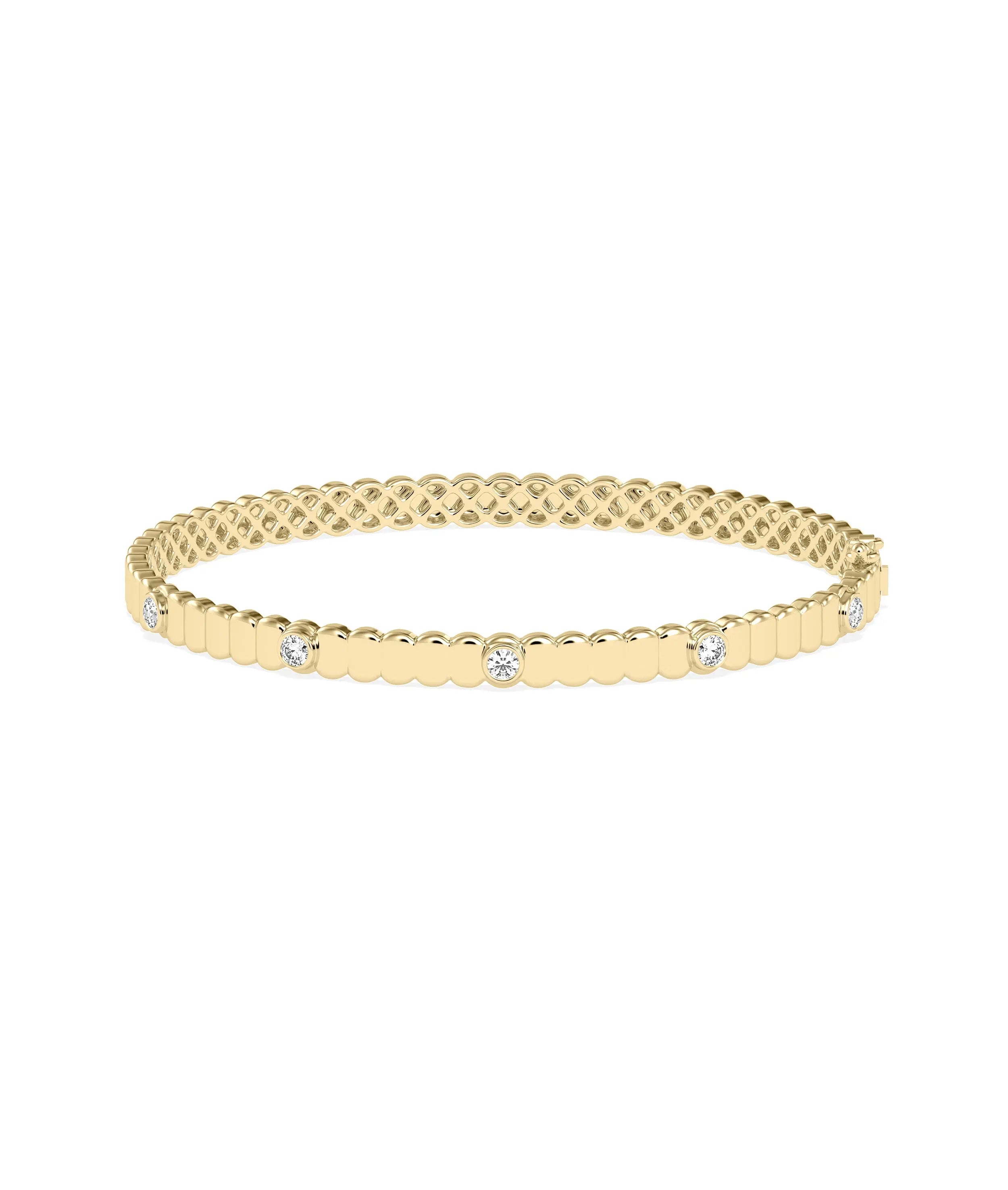 The Birthstone Fluted Bangle is a stylish and comfortable bangle featuring a unique Fluted design and a birthstone charm. Made with high-quality materials, it's both durable and eye-catching. Perfect for adding a personal touch to any outfit.Discover elegance with our Birthstone Fluted Bangle, featuring exquisite gold and diamond craftsmanship. Perfect for everyday jewelry and special moments. Shop online now!