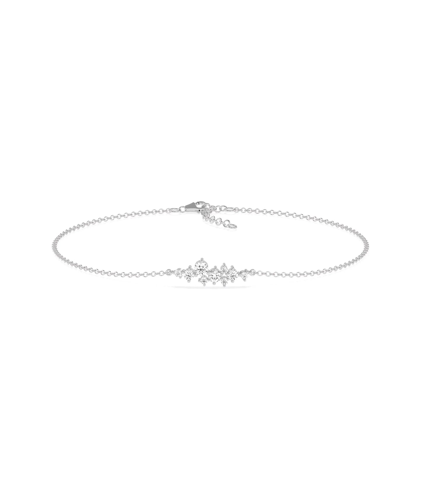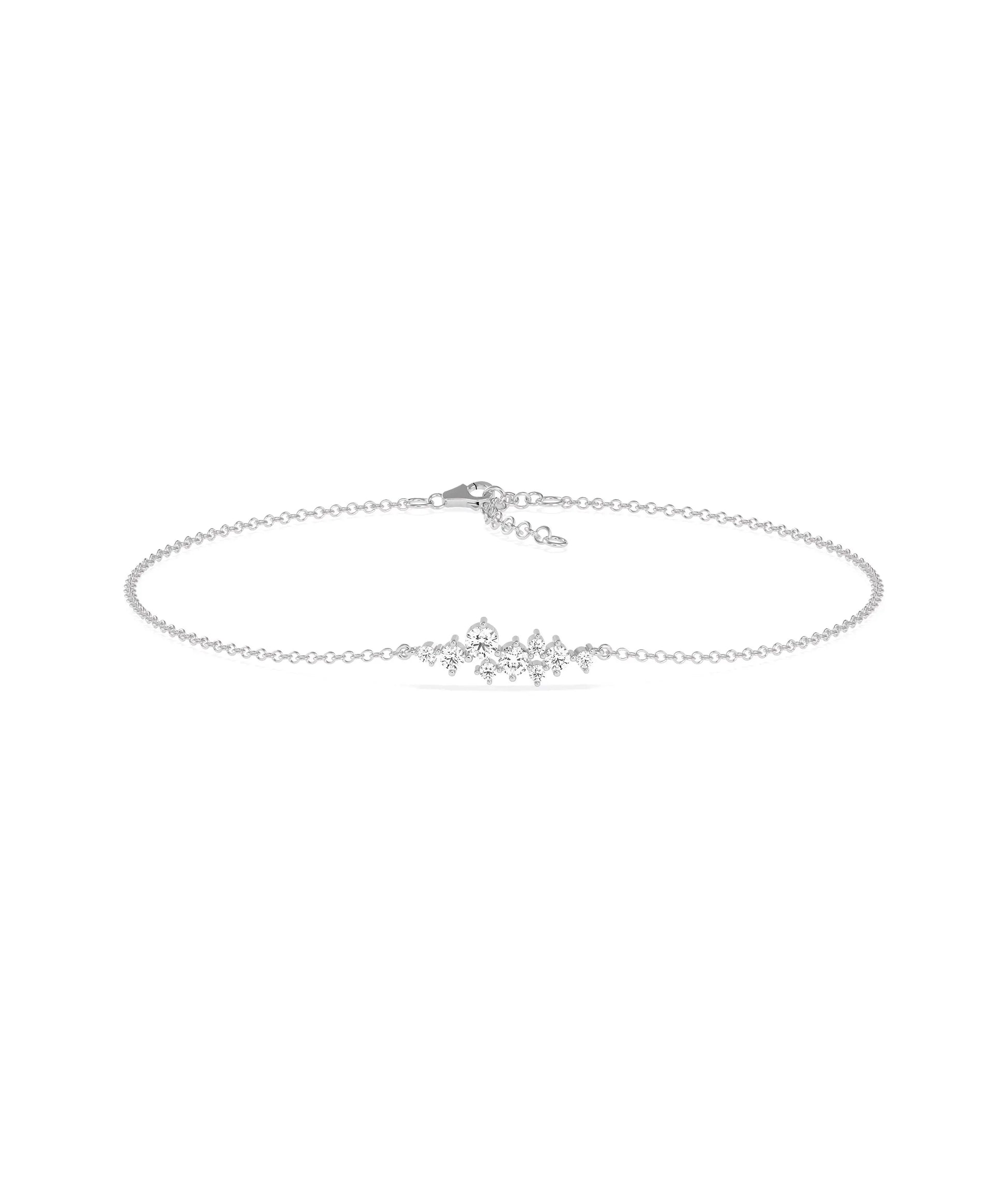Introducing our stunning Diamond Cluster Cable Chain Bracelet. This exquisite piece features a beautiful cluster of sparkling diamonds, adding elegance and sophistication to any outfit. Treat yourself or someone special today!