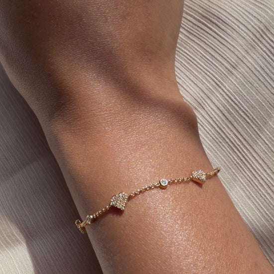 Fall in love with our Diamond Pave and Solitaire Station Bracelet featuring heart and station designs. Perfect for any occasion - this stunning piece adds an elegant touch to any outfit.Elegant Diamond Pave and Solitaire Station Bracelet. Perfect diamond bracelet for women, ideal for everyday jewelry. Shine with sophistication!
