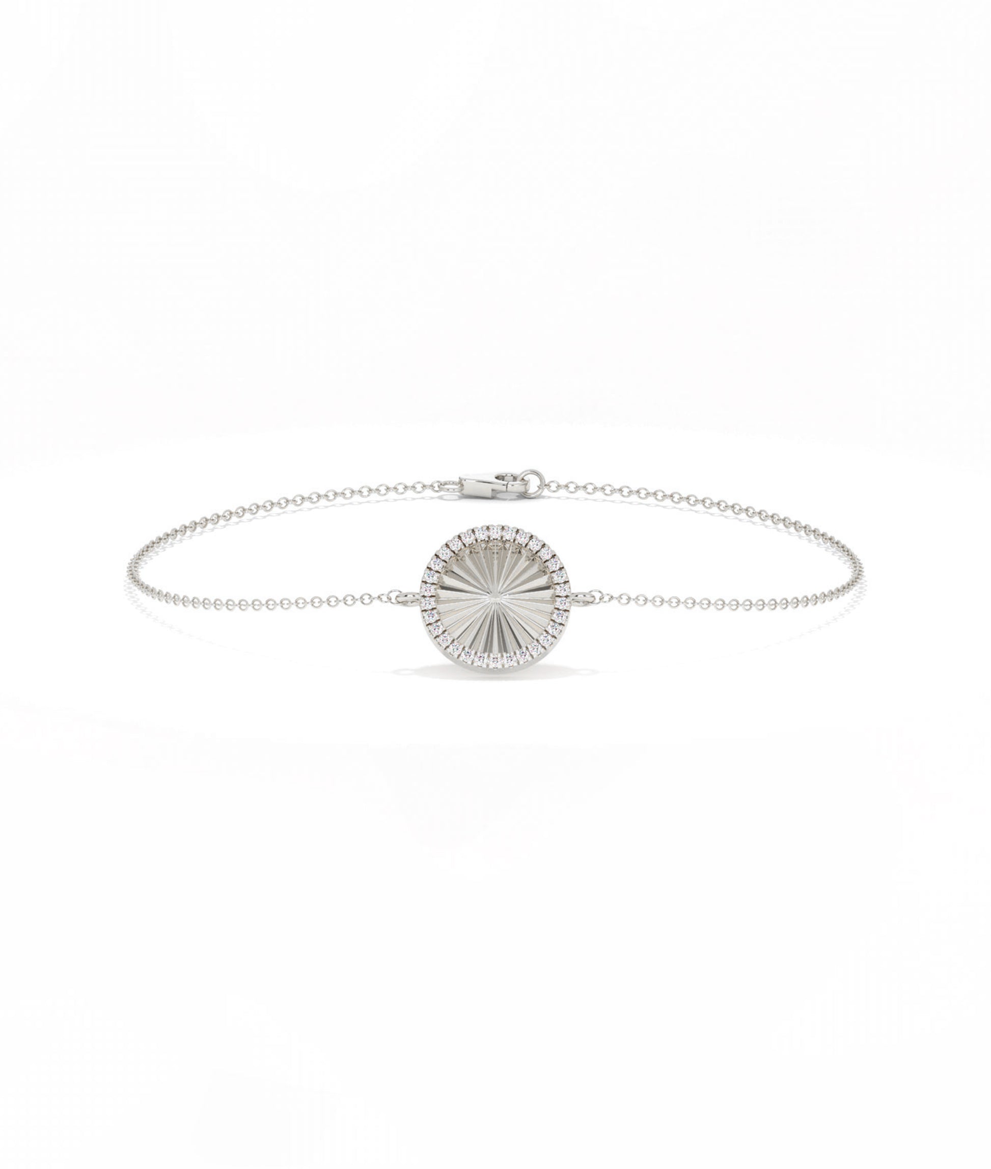 Introducing the Fluted Circle Bracelet, a stunning piece combining elegance and simplicity. This beautiful bracelet features fluted circle design crafted with precision and sparkling diamond accents, adding a touch of sophistication to any outfit.