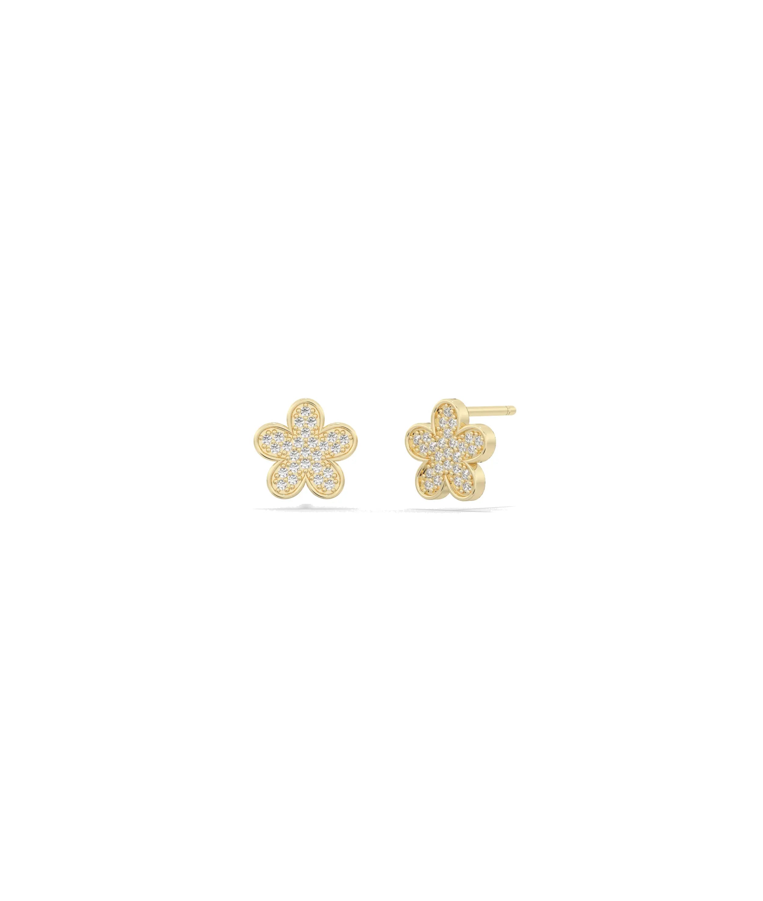 Unveil classic sophistication with our Diamond Pave Set Flower Earrings. Perfect for any occasion, these diamond earrings offer a stunning floral design. Introducing our exquisite Diamond Pave Set Flower Earrings! These beautiful studs feature a charming floral design, crafted with precision and adorned with sparkling diamonds. A perfect addition to your jewelry collection.