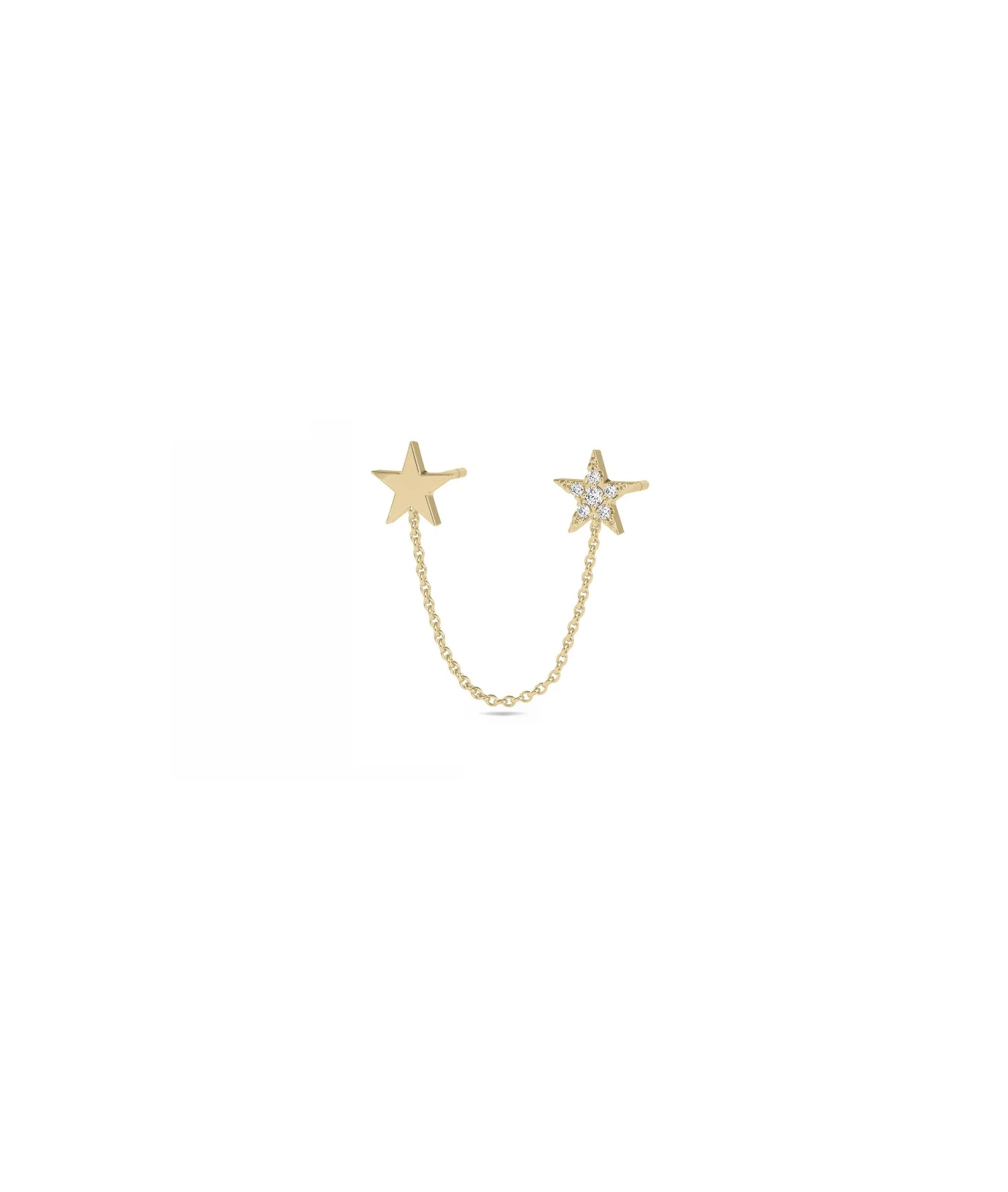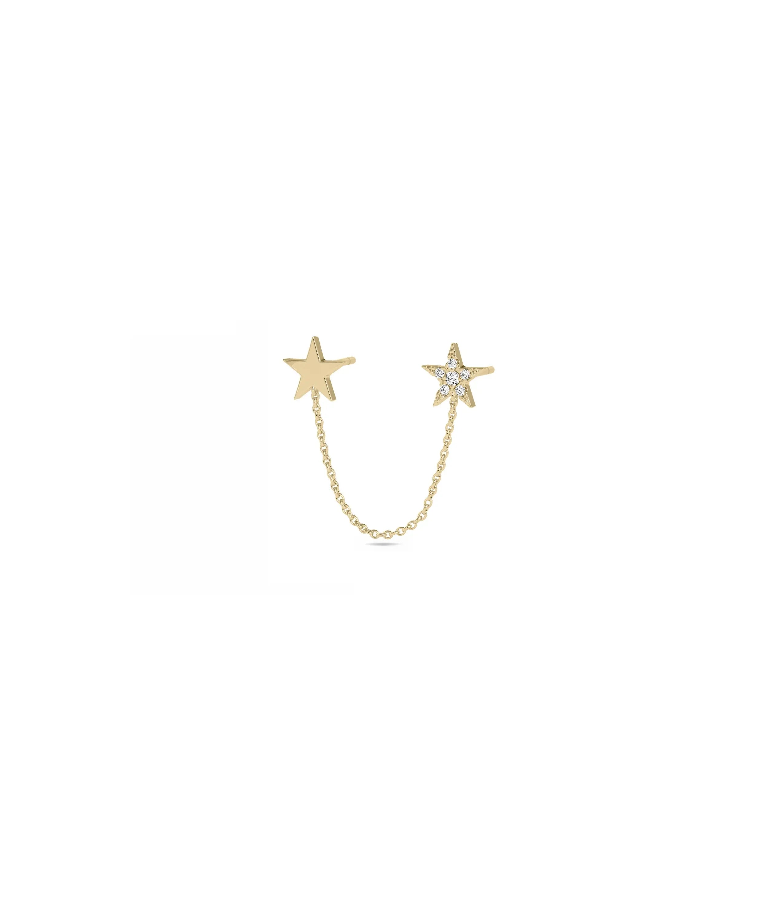 Sparkle with our Diamond Star 2 Piercing Earring. These elegant diamond earrings are perfect as everyday jewelry, adding a touch of sparkle to any look. Introducing the Diamond Star 2 Piercing Earring: a stunning star-shaped accessory that will elevate your style effortlessly. With its captivating design and high-quality materials, this earring is a must-have for fashion-forward individuals. Get ready to shine!