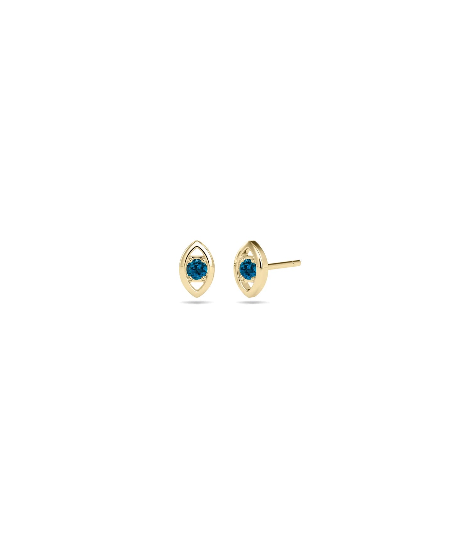 Introducing our Birthstone Evil Eye Stud Earring. This exquisite earring combines the protective power of the Evil Eye with the elegance of a stud design. Choose your birthstone and enjoy a stylish, yet meaningful accessory. Perfect for everyday wear."Discover elegance with our Birthstone Evil Eye Stud Earrings. Perfect for everyday jewelry, these diamond earrings add a touch of sophistication to any look."