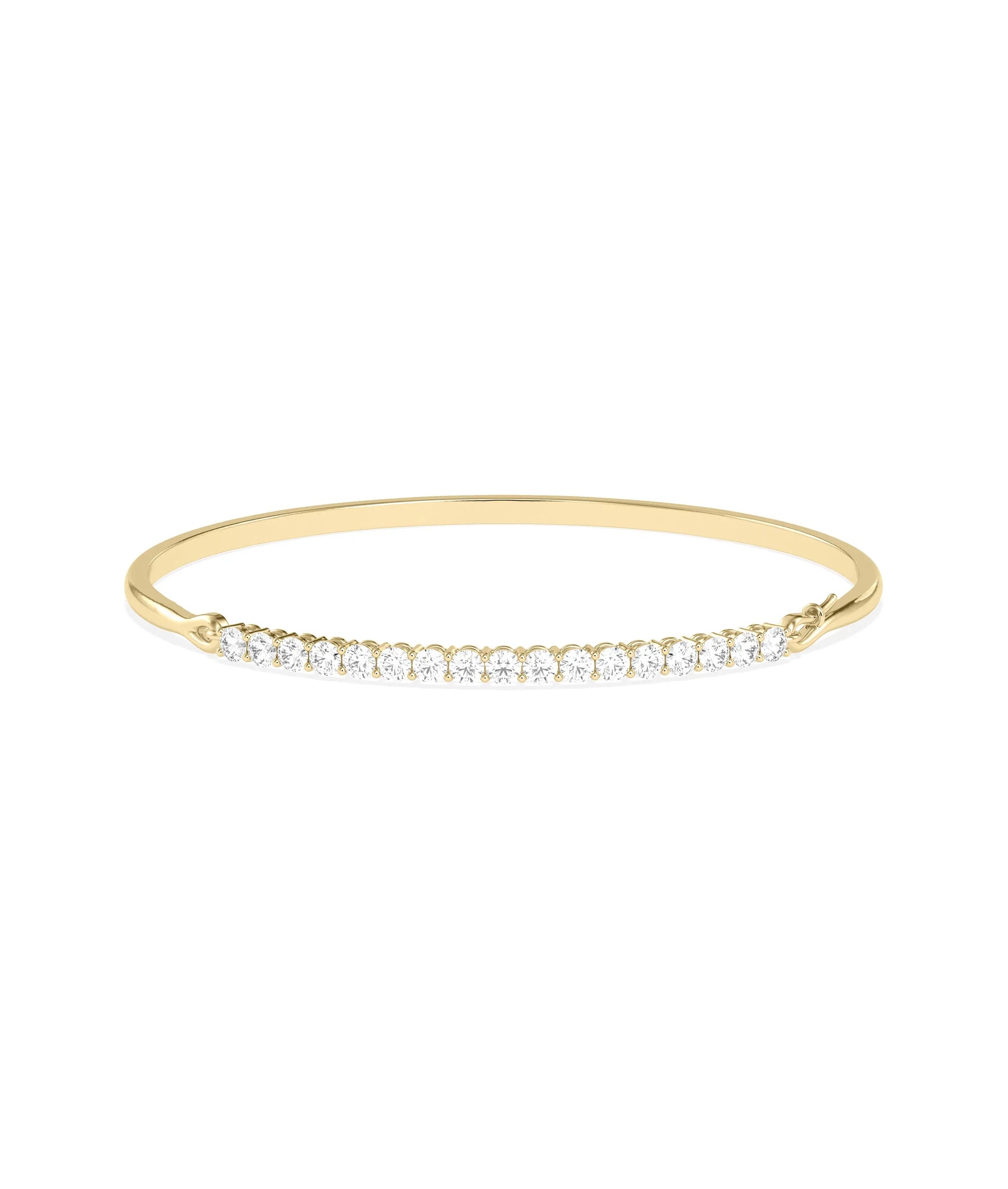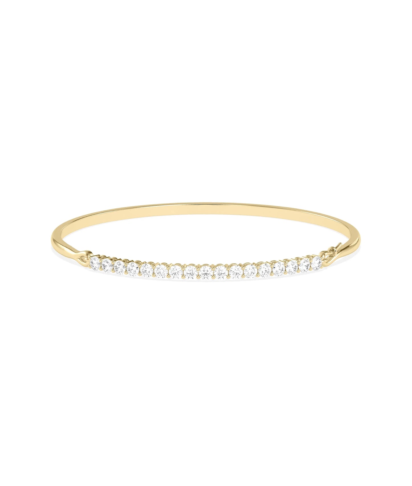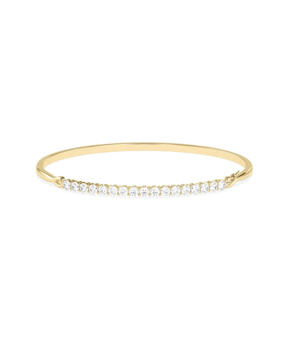 Introducing the stunning Diamond Line Bangle, a true embodiment of elegance and style. This exquisite piece features a delicate line of dazzling diamonds, meticulously set in a sleek and timeless design. Crafted with precision and attention to detail, this bangle is the perfect accessory to elevate any outfit, whether it's a special occasion or a casual day out. With its friendly and inviting tone, this Diamond Line Bangle is sure to capture hearts and make a lasting impression. Experience the brilliance and sophistication it brings to your jewelry collection.