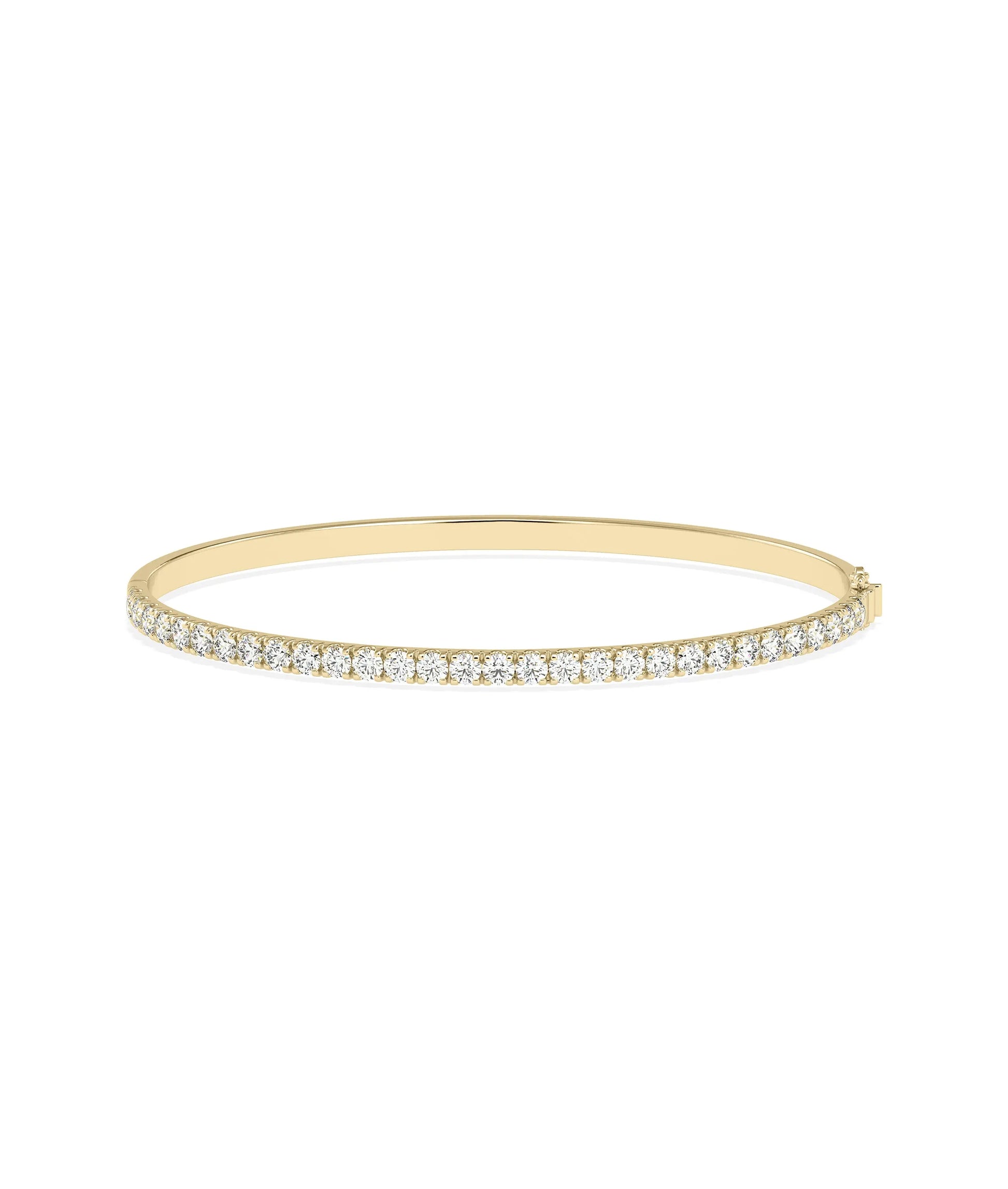 Introducing the stunning Diamond Line Bangle, a true embodiment of elegance and style. This exquisite piece features a delicate line of dazzling diamonds, meticulously set in a sleek and timeless design. Crafted with precision and attention to detail, this bangle is the perfect accessory to elevate any outfit, whether it's a special occasion or a casual day out. With its friendly and inviting tone, this Diamond Line Bangle is sure to capture hearts and make a lasting impression. Experience the brilliance and sophistication it brings to your jewelry collection.