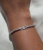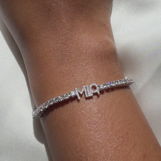 Introducing our stunning Custom Diamond Pave Name Tennis Bracelet! This one-of-a-kind piece features your name in sparkling diamonds and is perfect for any tennis lover. Get ready to turn heads on the court with this personalized beauty!