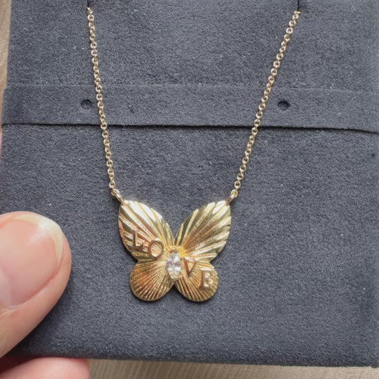 Crafted in solid gold with meticulous attention to detail the necklace celebrates transformation through quality materials. The 18mm butterfly requires expert construction maintaining intricate wing details while 0.13 carats of diamonds including solitaire demand precise setting. The mantra element requires careful execution. This dedication creates jewelry honoring transformation through sophisticated craftsmanship and enduring precious materials with substantial sparkling brilliance and refined substantial quality elegant beautiful personalized nature-inspired symbolic transformative refined substantial detailed execution celebrating change with lasting beautiful substantial quality meaningful personalized symbolic transformative elegant beautiful refined substantial quality character honoring transformation personal meaning beautifully substantially eloquently magnificently throughout with exceptional craftsmanship celebrating transformative personalized symbolic substantially magnificently with refined elegant beautiful personalized nature-inspired symbolic transformative solitaire quality character expressing transformation through exceptional detailed butterfly solitaire mantra quality craftsmanship beautifully substantially magnificently.