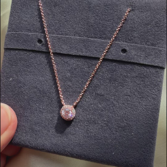Discover our Elegant Solitaire Halo Necklace. This diamond necklace features a radiant halo design that enhances the solitaire diamond, creating a classic and elegant look. This stunning Solitaire Halo Necklace is the perfect choice for those seeking a classic yet modern look. With its exquisite design and high-quality craftsmanship, this necklace is sure to impress. The Solitaire gemstone at the center of the halo adds a touch of sophistication.