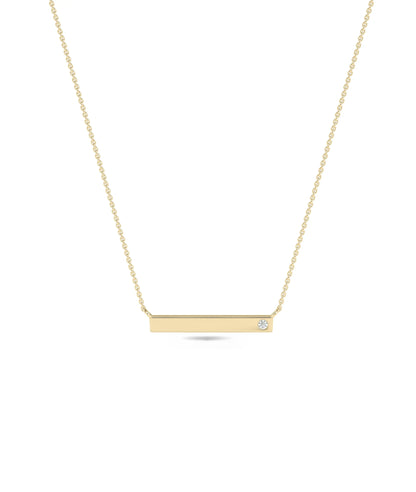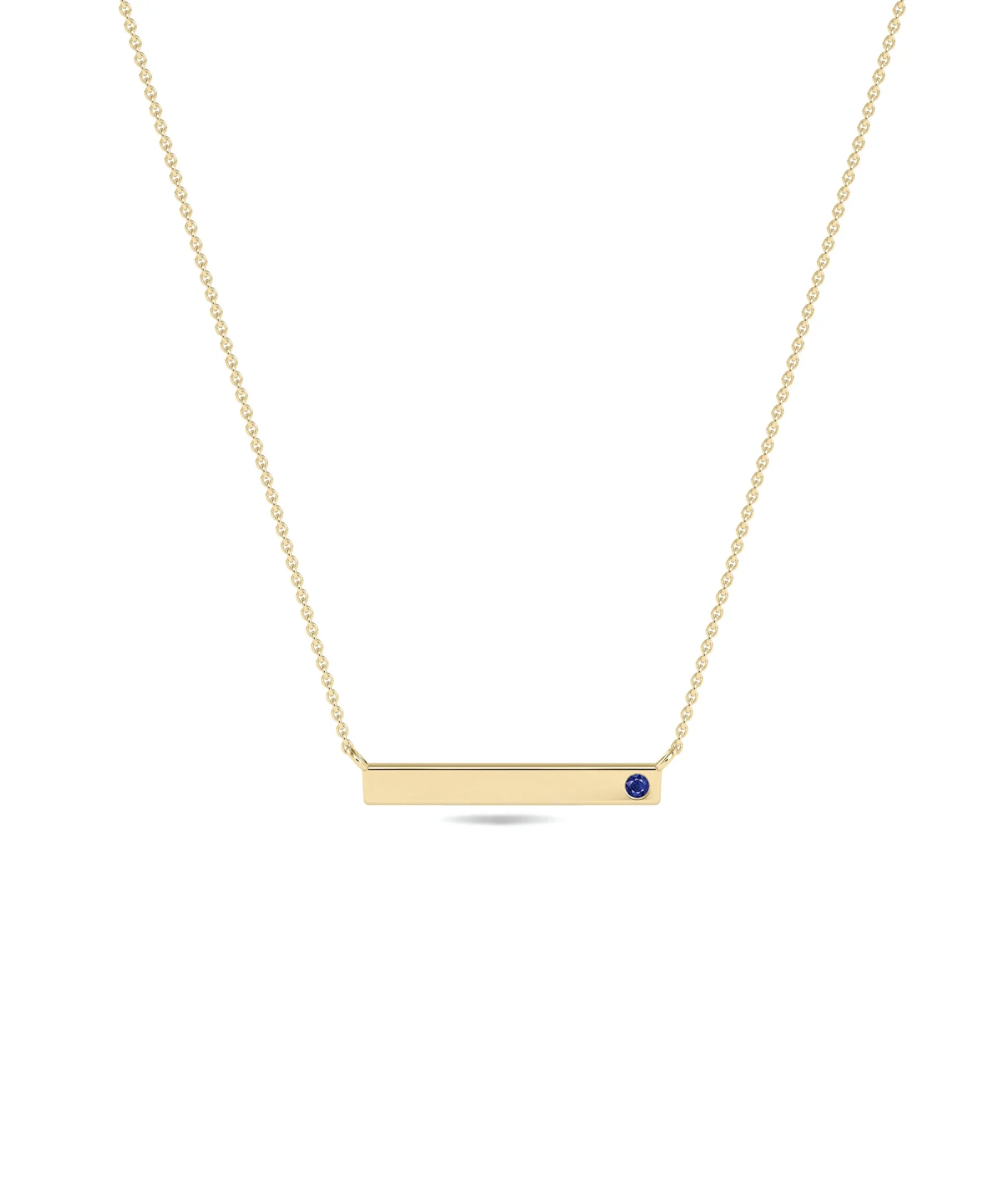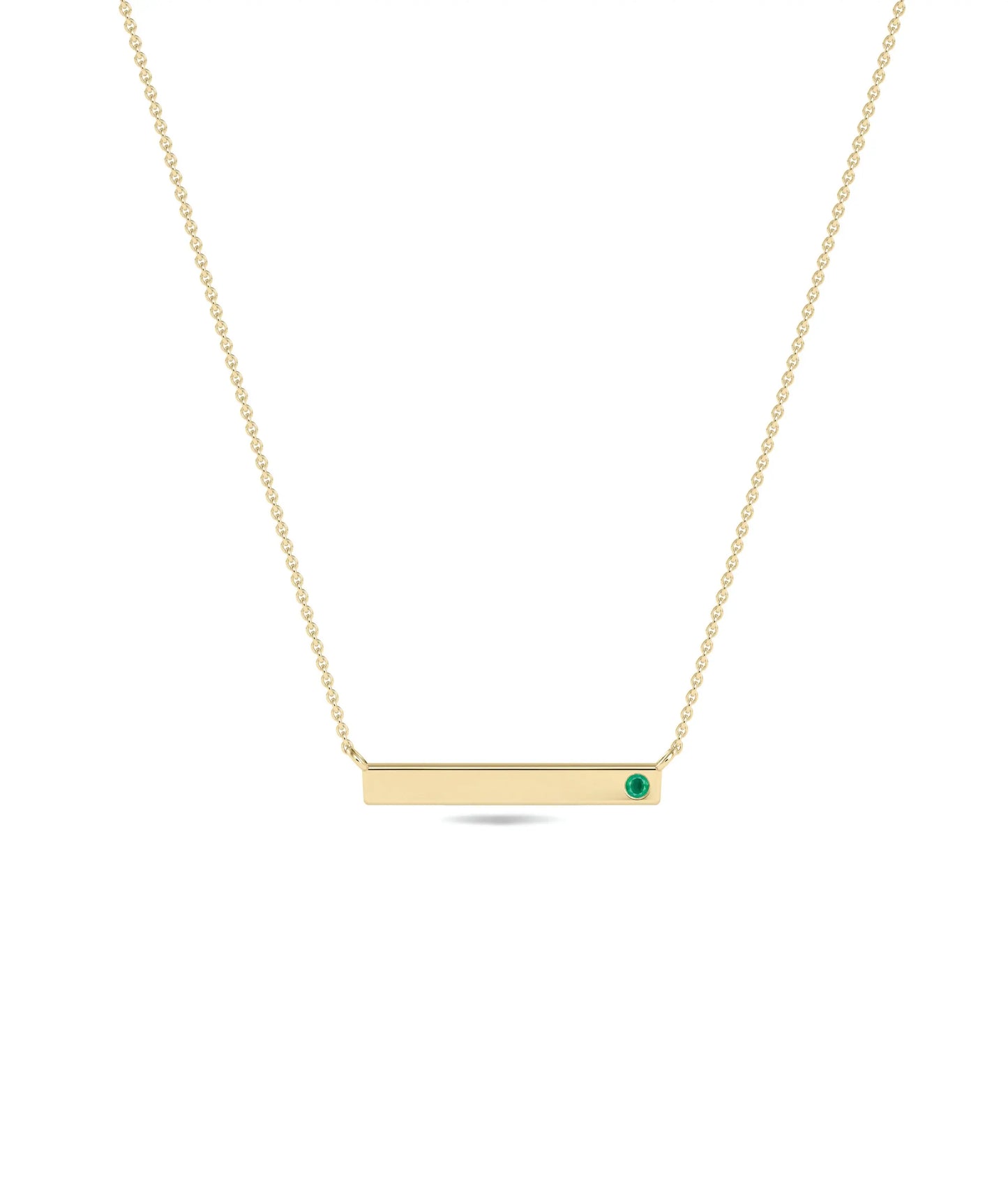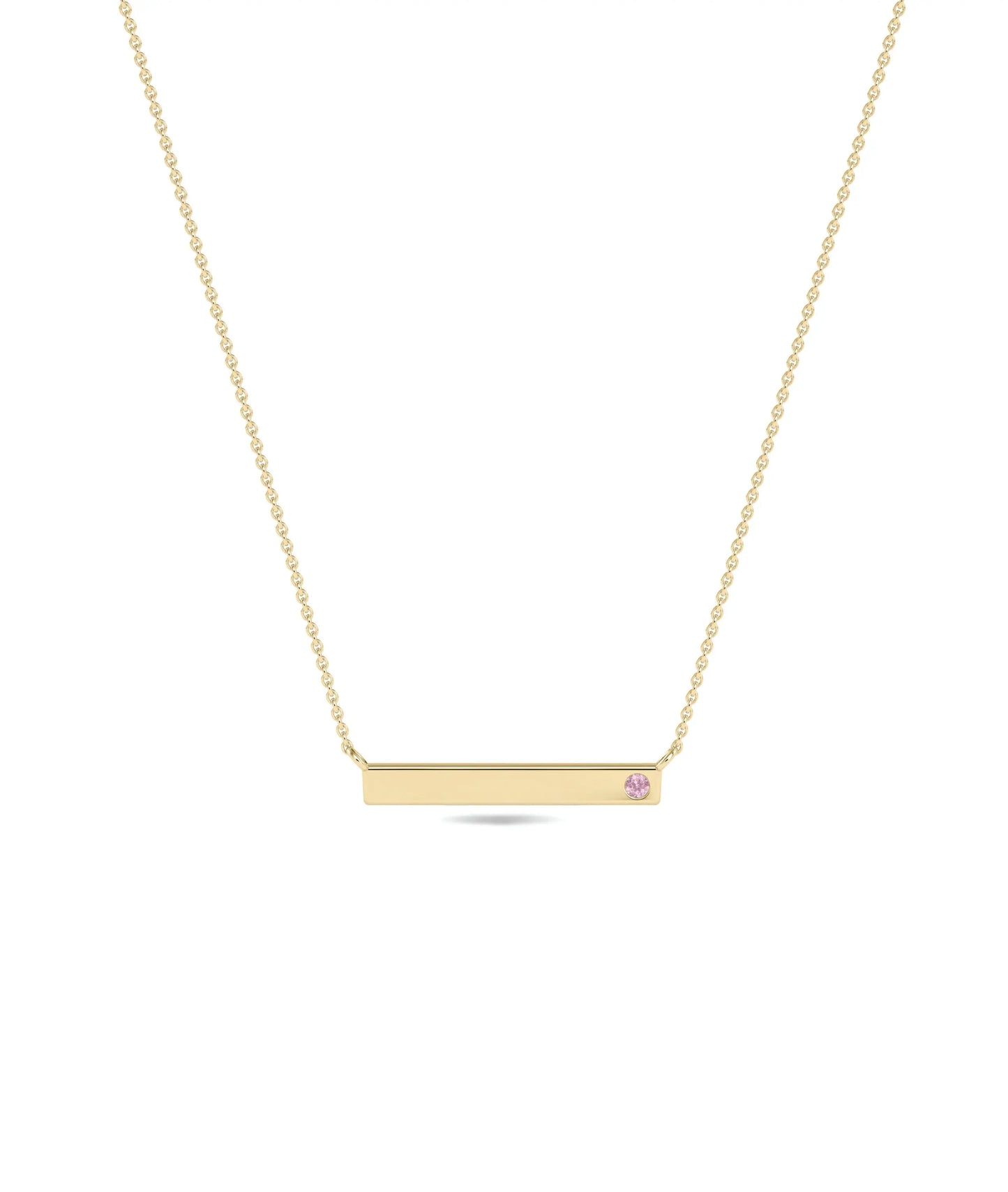 Explore the perfect everyday jewelry with our Birthstone Bar Necklace. A stunning diamond necklace for women, adding elegance to any outfit. Introducing our Birthstone Bar Necklace! This elegant necklace features a sleek bar design, adorned with a beautiful solitaire birthstone of your choice. It is engravable for a personal touch. Perfect for showcasing your birthstone with style and sophistication.