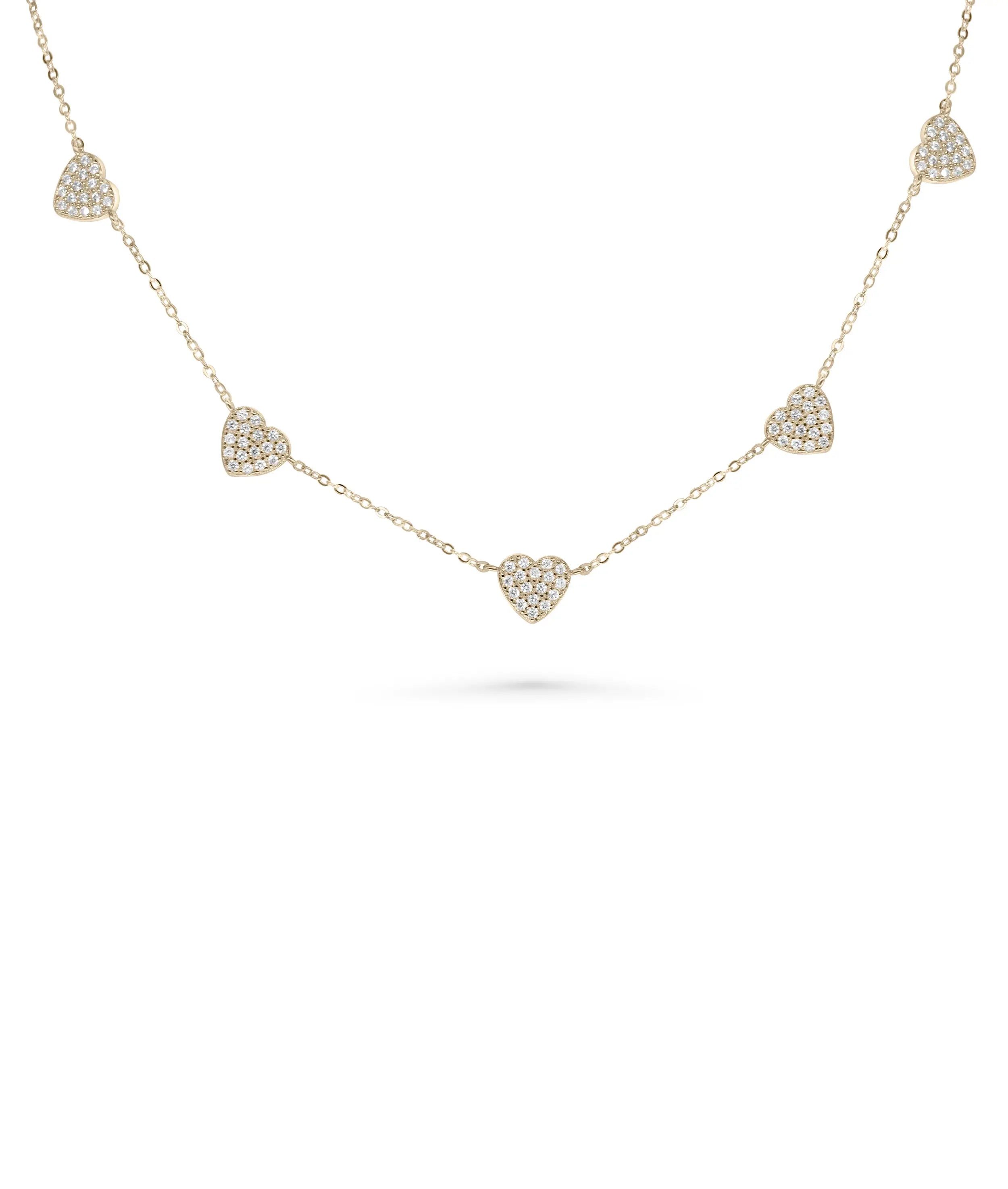 Heart Pave Station Necklace Romantic Multi-Heart Gold