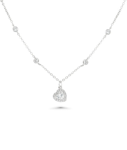 This necklace features 0.35-carat heart-shaped solitaire as centerpiece, enhanced by 0.30 carats of accent diamonds. The heart solitaire combines classic solitaire prominence with romantic symbolism while accent diamonds add supporting sparkle. This combination produces jewelry that's both elegantly focal and comprehensively brilliant through strategic diamond placement and meaningful shape selection.