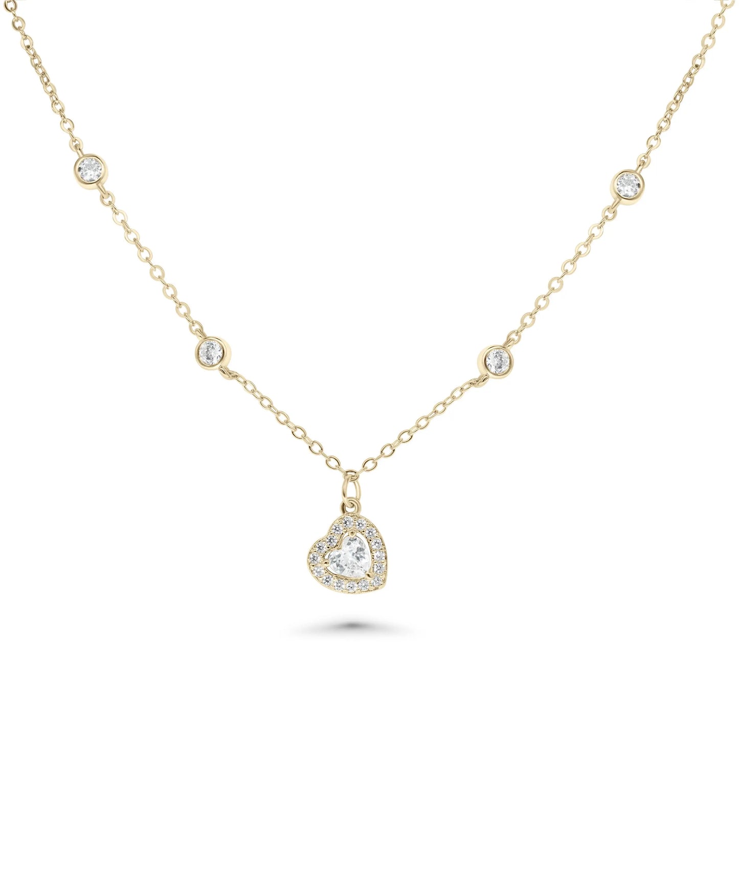 Diamond Solitaire Necklace Heart Pendant Gold Chain