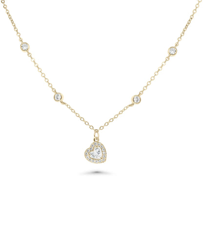 • Diamond Solitaire Necklace front view yellow gold with heart solitaire pendant