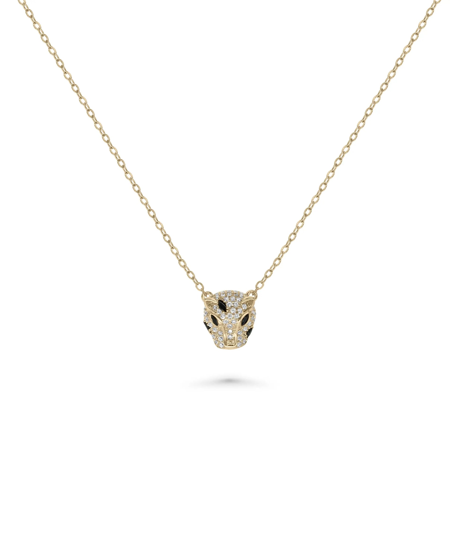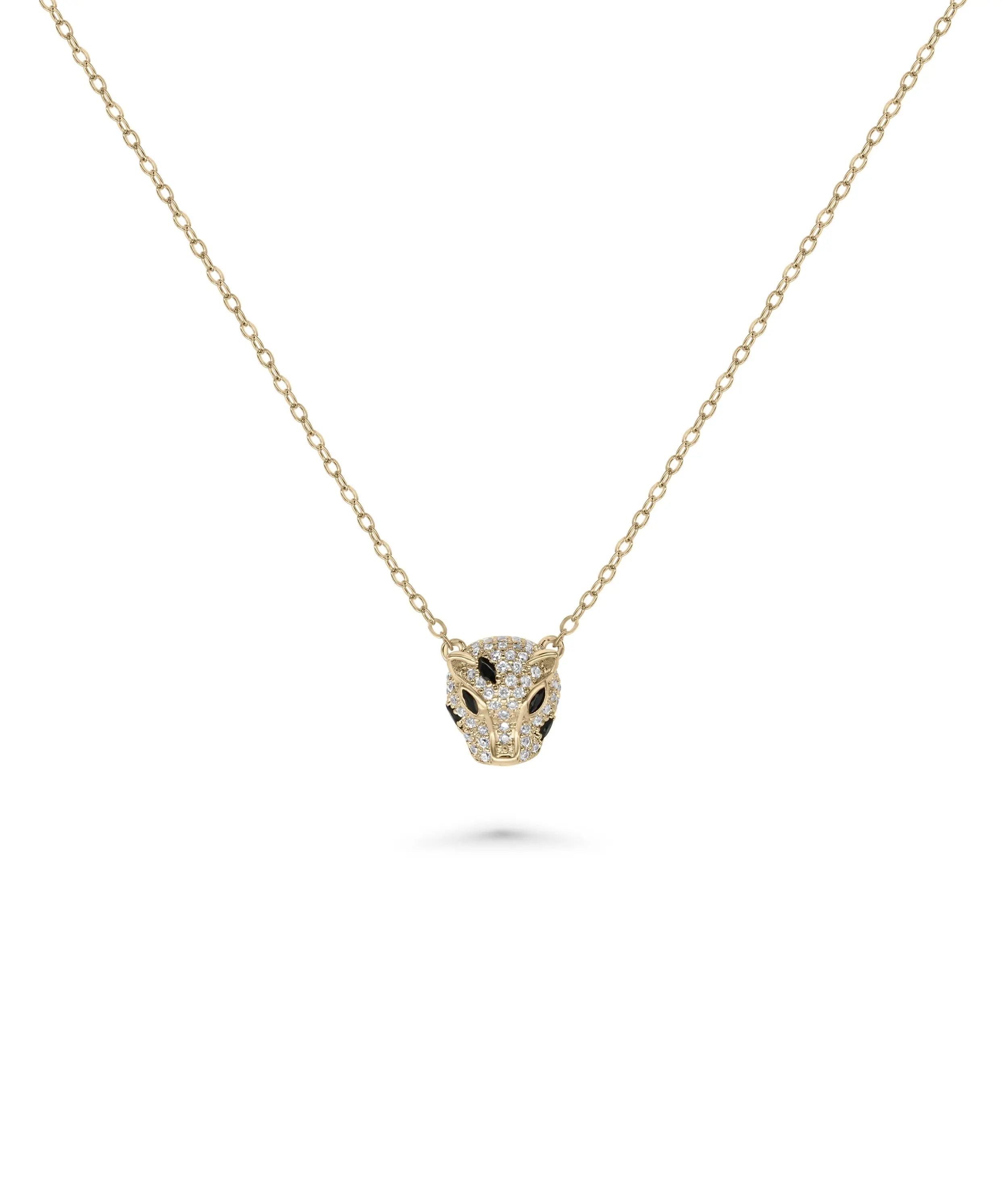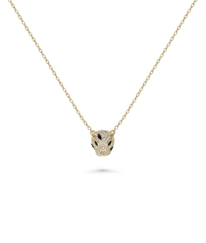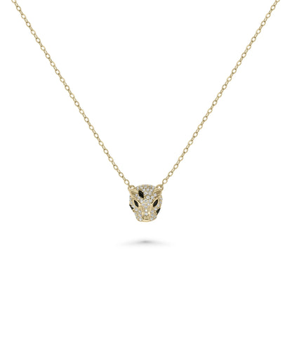 Diamond Panther Head Necklace Bold Animal Pendant Gold