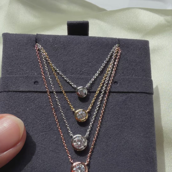 Explore the Bezel Solitaire Diamond Necklace, a stunning diamond necklace featuring a timeless design. Perfect for any occasion, this piece also complements diamond tennis necklaces beautifully. This stunning piece is crafted with precision, featuring a single solitaire diamond set in a bezel setting. The elegant design accentuates the beauty of the diamond, allowing it to shine brilliantly.