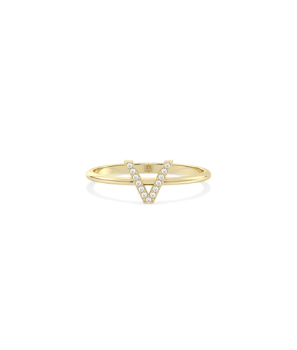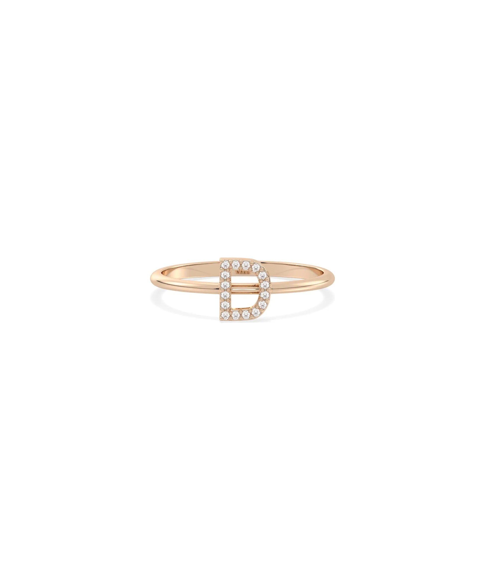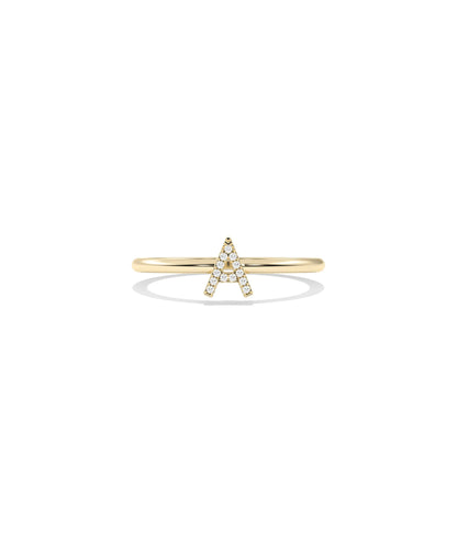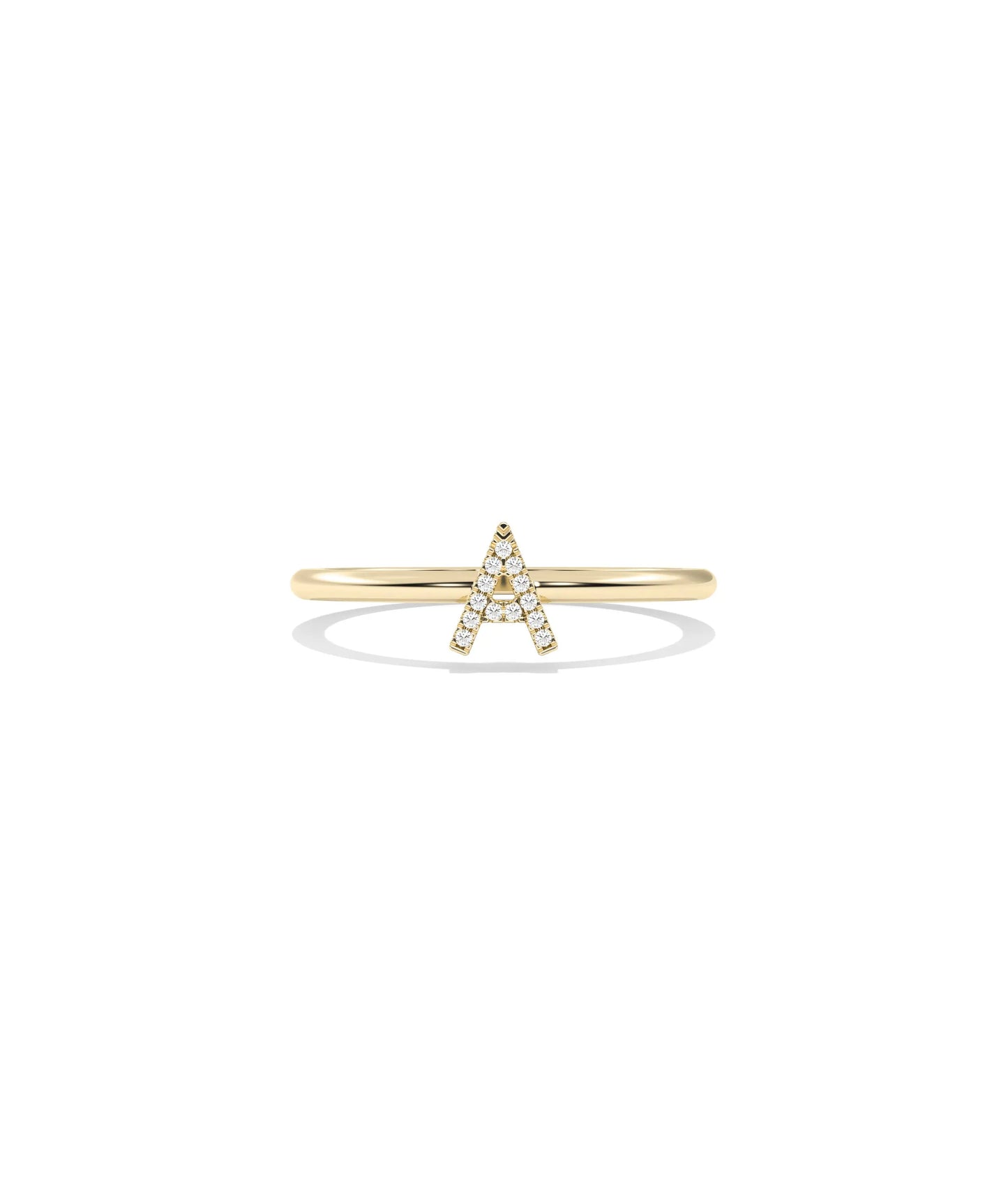 This 14K gold ring features a diamond-studded initial letter, making it a perfect personalized gift. The ring is elegant, stylish, and timeless.