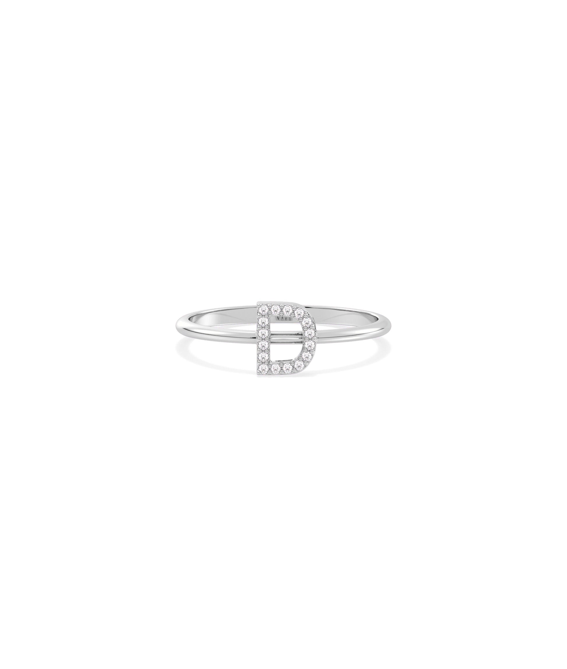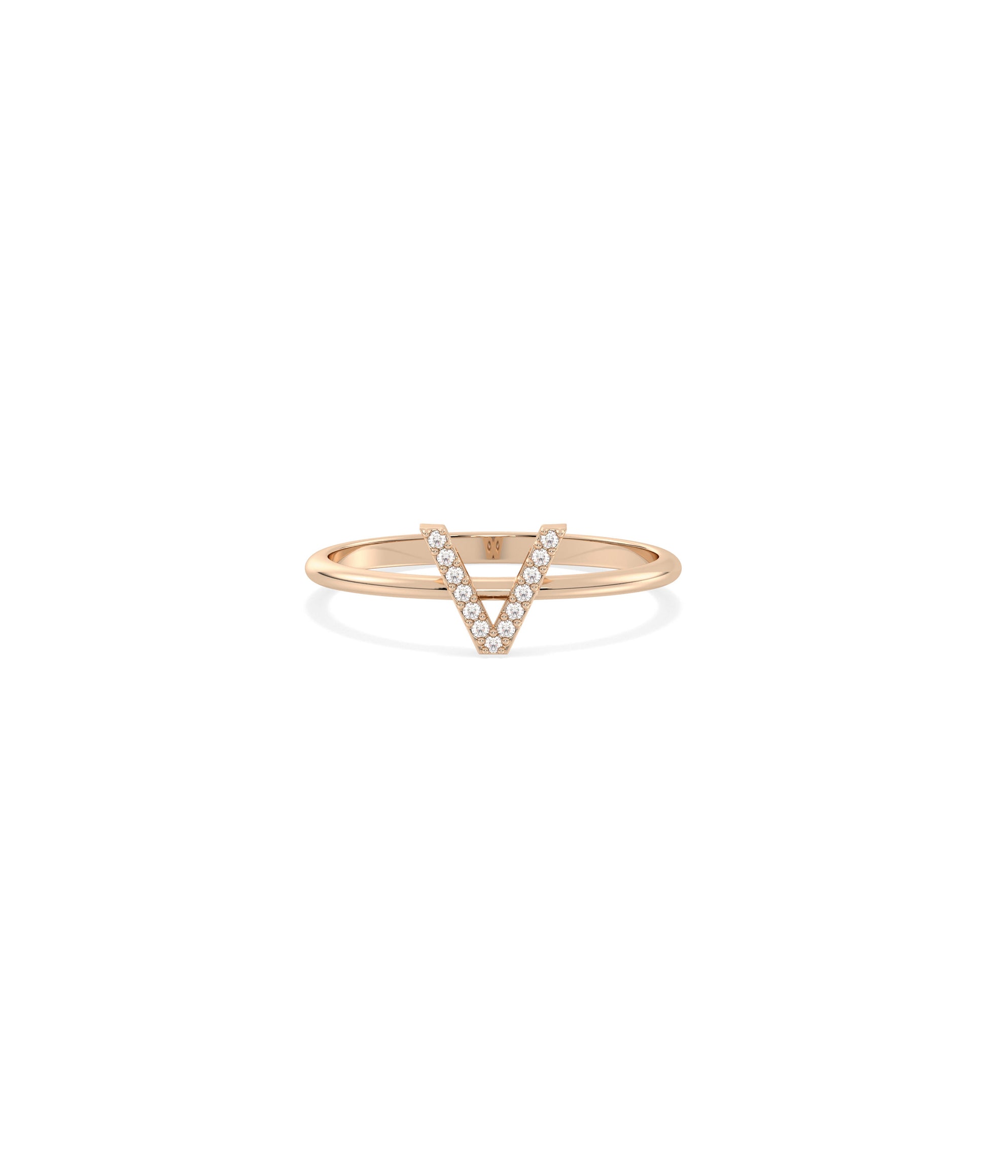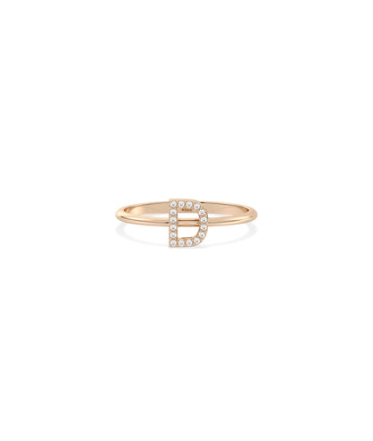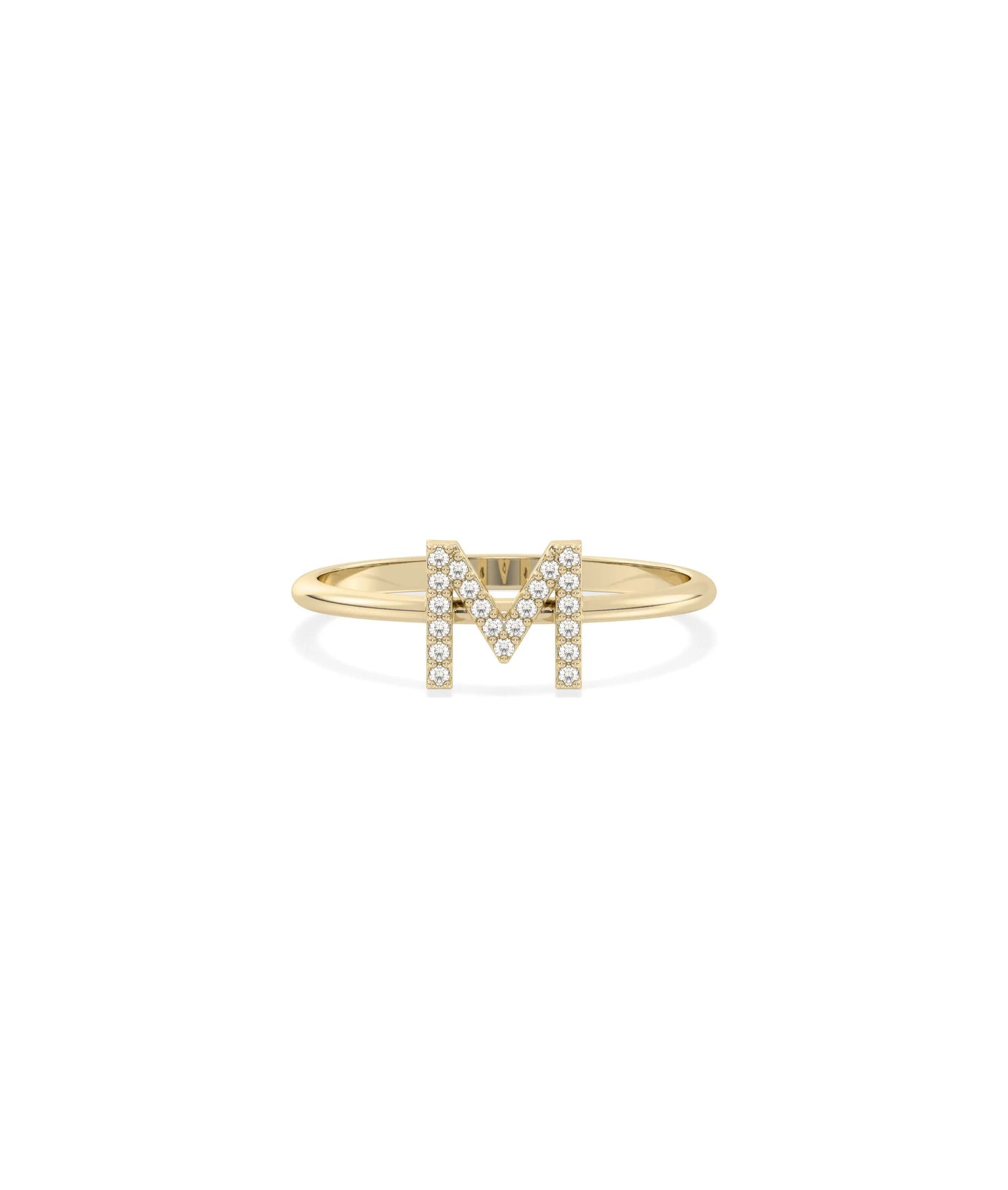 This 14K gold ring features a diamond-studded initial letter, making it a perfect personalized gift. The ring is elegant, stylish, and timeless.