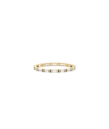Yes, the 1.5 mm width makes this ring perfect for stacking. The Diamond Baguette Eternity Band Ring's slim profile allows for beautiful layering with engagement rings or multiple bands, creating elegant, personalized combinations.