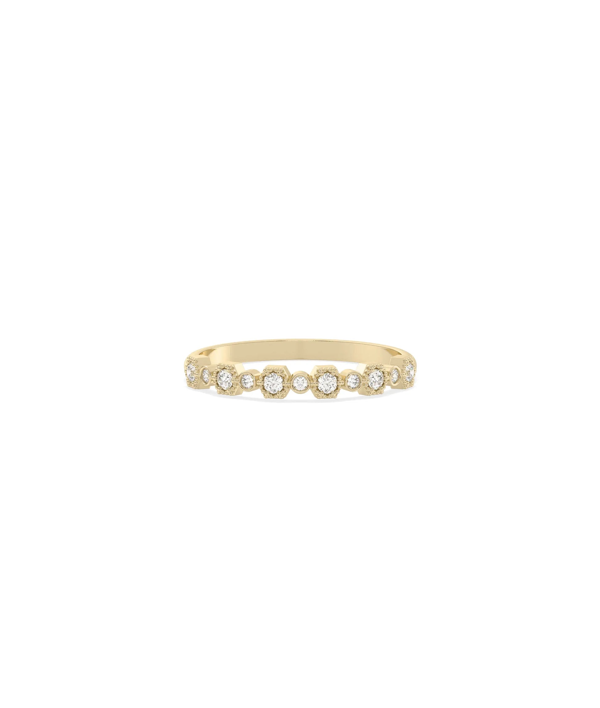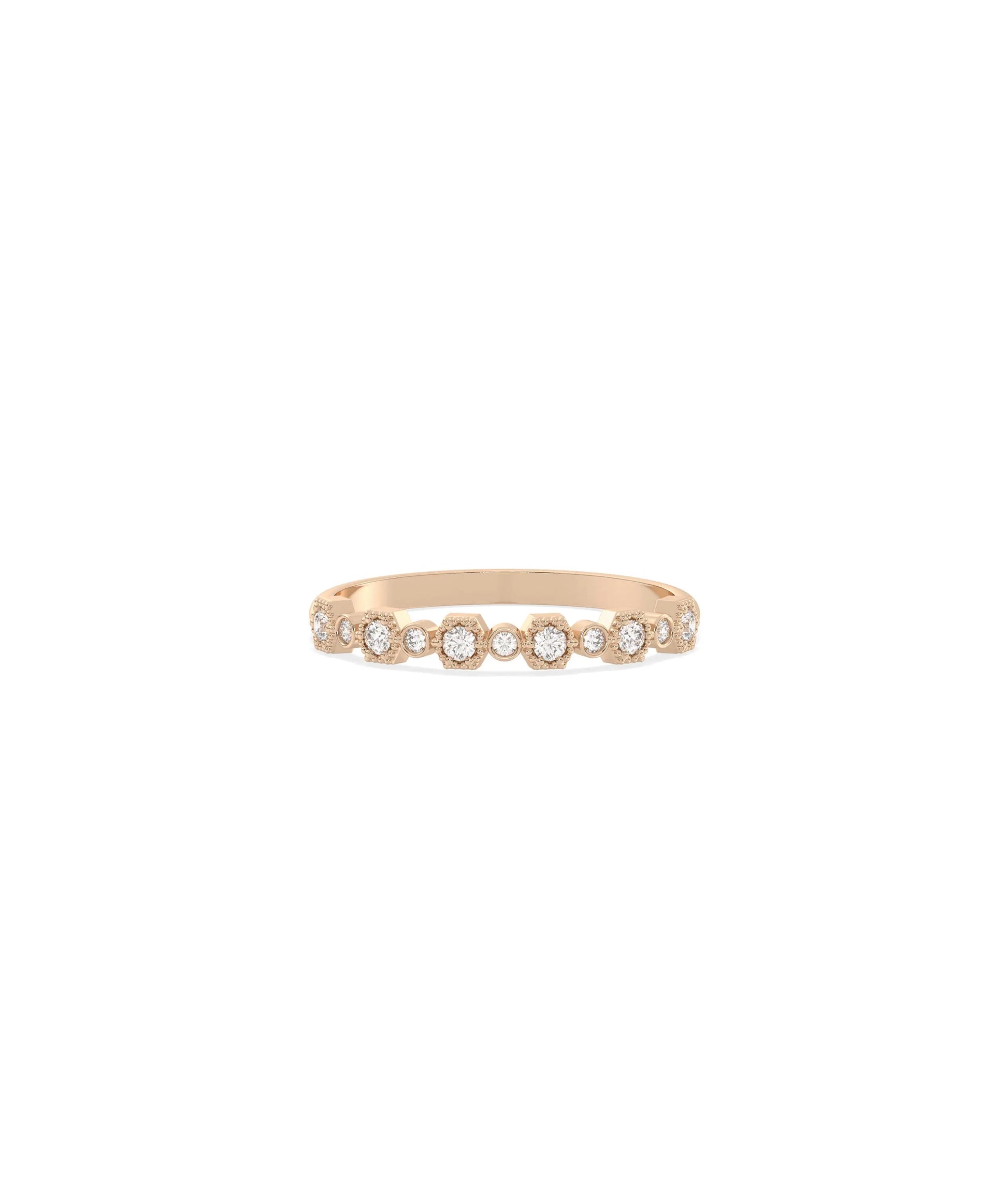 The alternating pattern creates visual movement as light dances across each diamond. This thoughtful spacing adds dimension and character, making your ring stand out from traditional continuous diamond bands.
