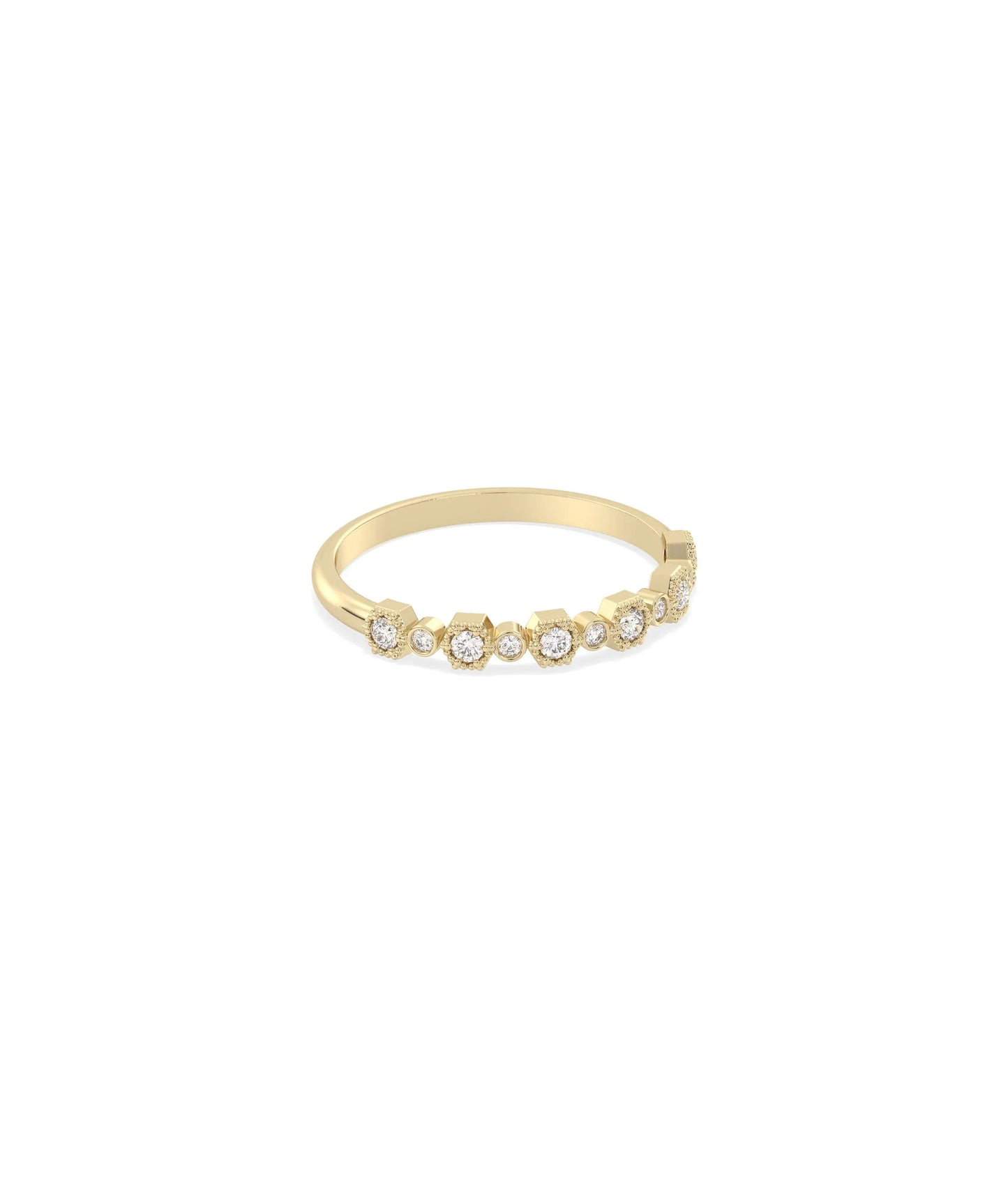 Layer this ring with wedding bands, plain gold rings, or textured styles to build your signature look. Its slim profile and rhythmic pattern add interest without bulk when combining multiple pieces.