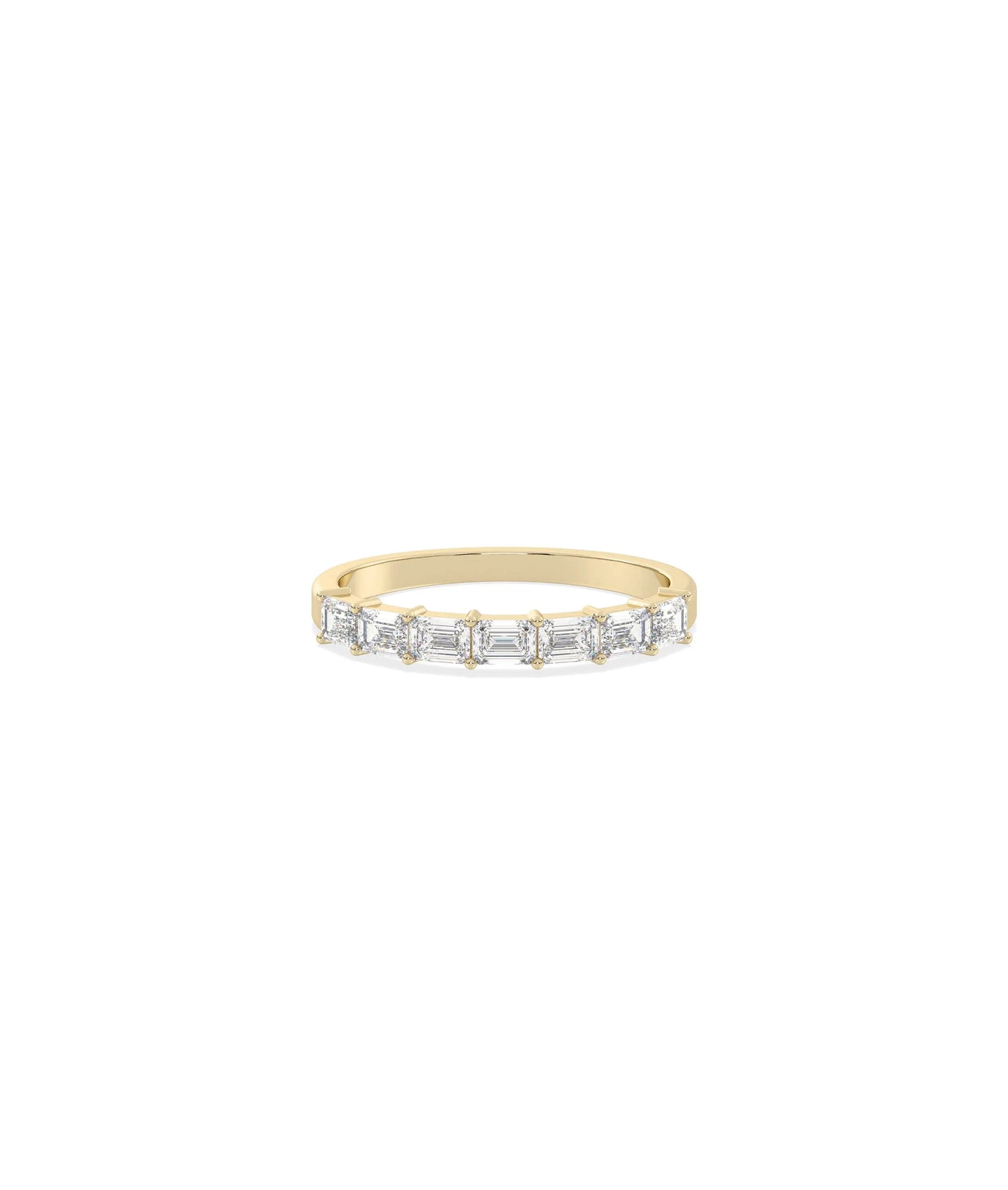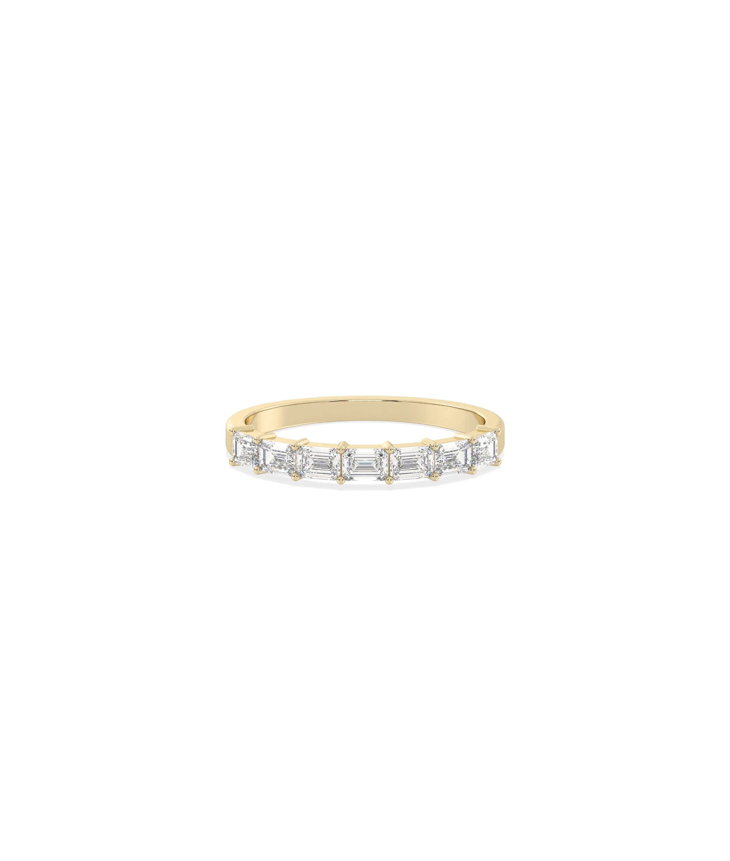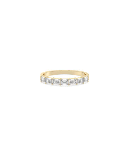 Crafted from 14K solid gold, this Emerald Cut Diamond Band Ring demonstrates expert workmanship. Setting multiple emerald cut diamonds requires precision to align the rectangular stones perfectly, while the secure settings and polished finish ensure lasting beauty throughout the sophisticated design.