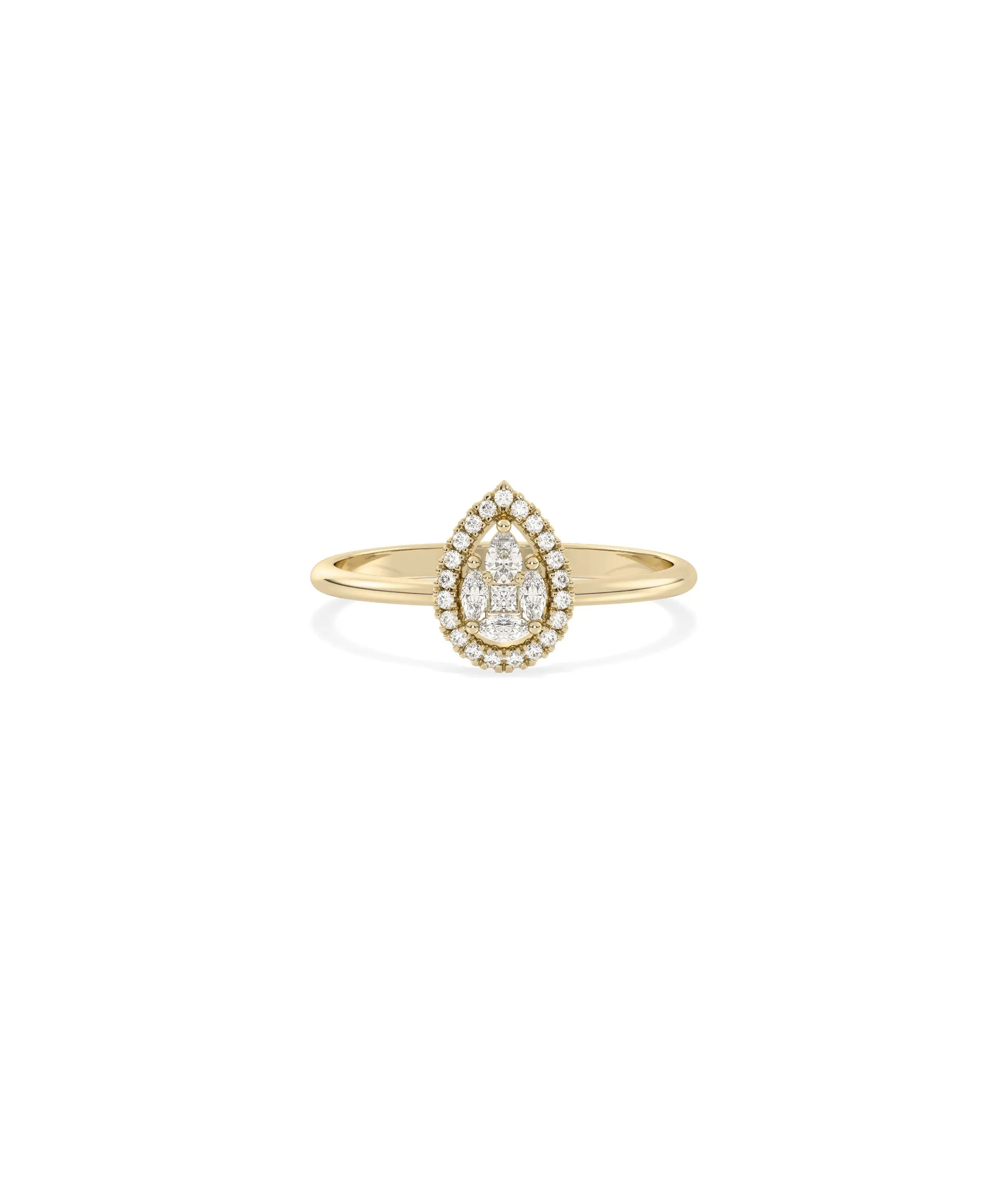 Crafted from 14K solid gold, this Diamond Illusion Set Band Ring demonstrates expert workmanship. Creating precise illusion settings for pear-shaped diamonds requires exceptional skill to achieve the reflective surrounds and secure placement, while the polished finish ensures lasting beauty throughout.