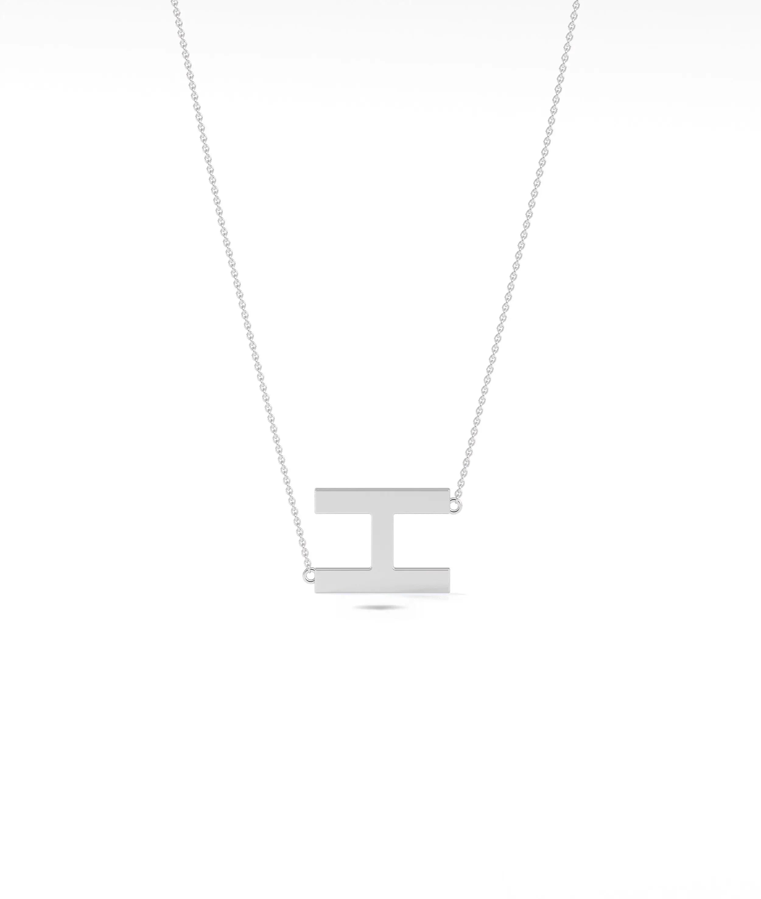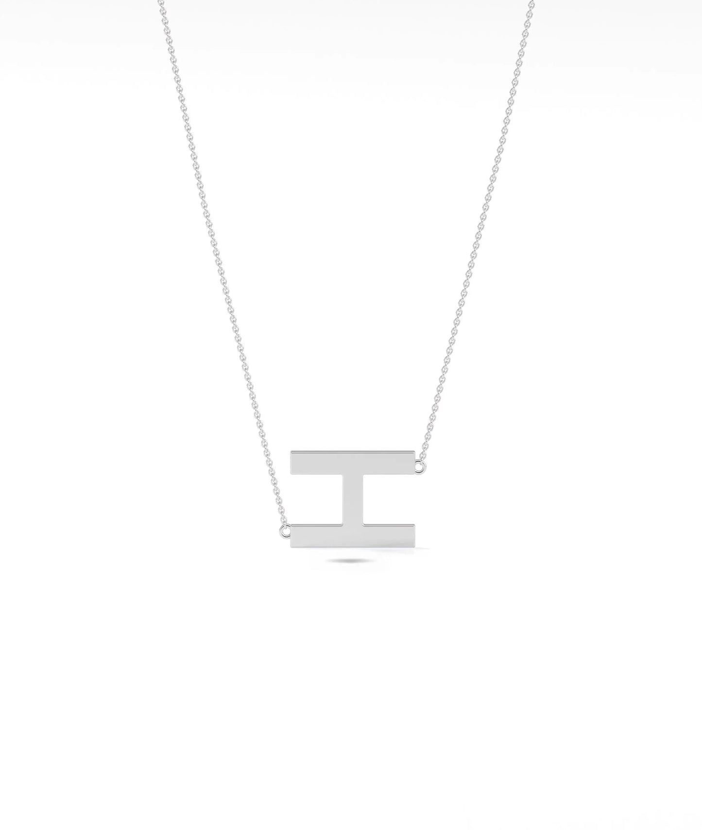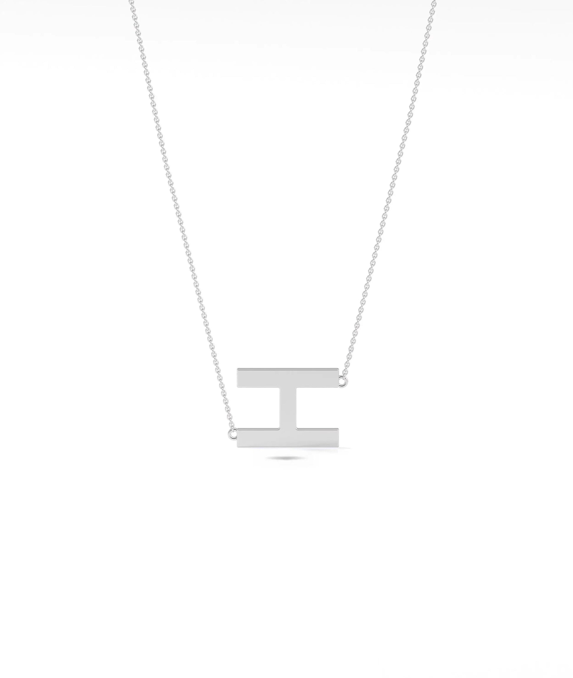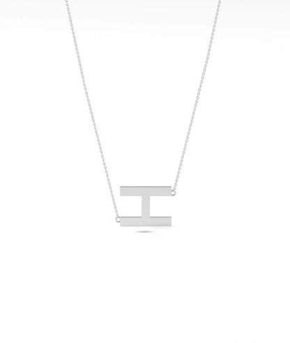 • Gold Horizontal Initial Necklace in white gold featuring sleek horizontal initial bar