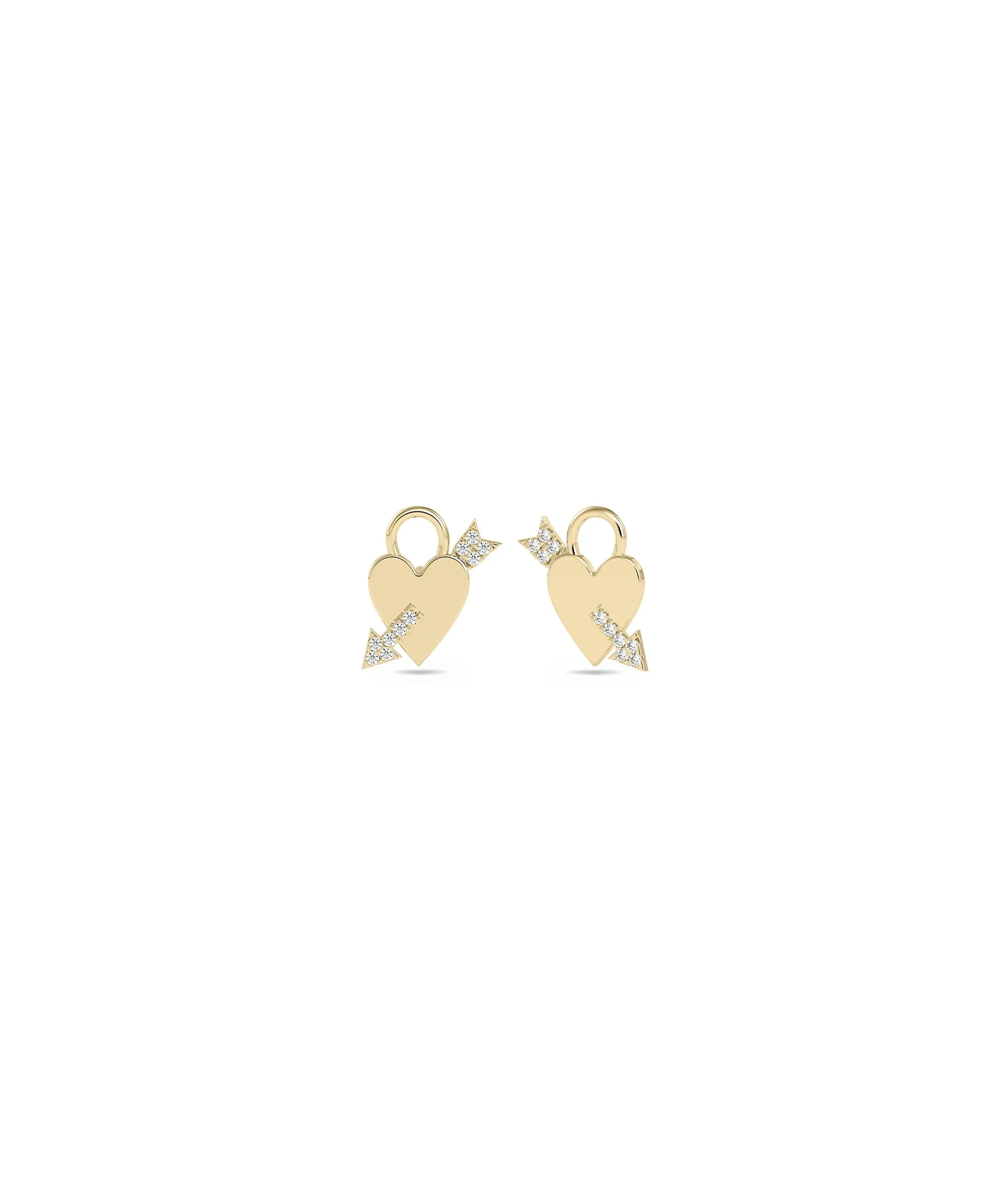 Explore elegance to your everyday jewelry with our Heart and Diamond Arrow Charm earrings. These stylish diamond earrings are perfect for daily wear, combining sophistication with a playful design. This diamond earring is perfect for adding a touch of elegance to any jewelry collection. Made with love, this heart charm is a must-have accessory. Get yours today!