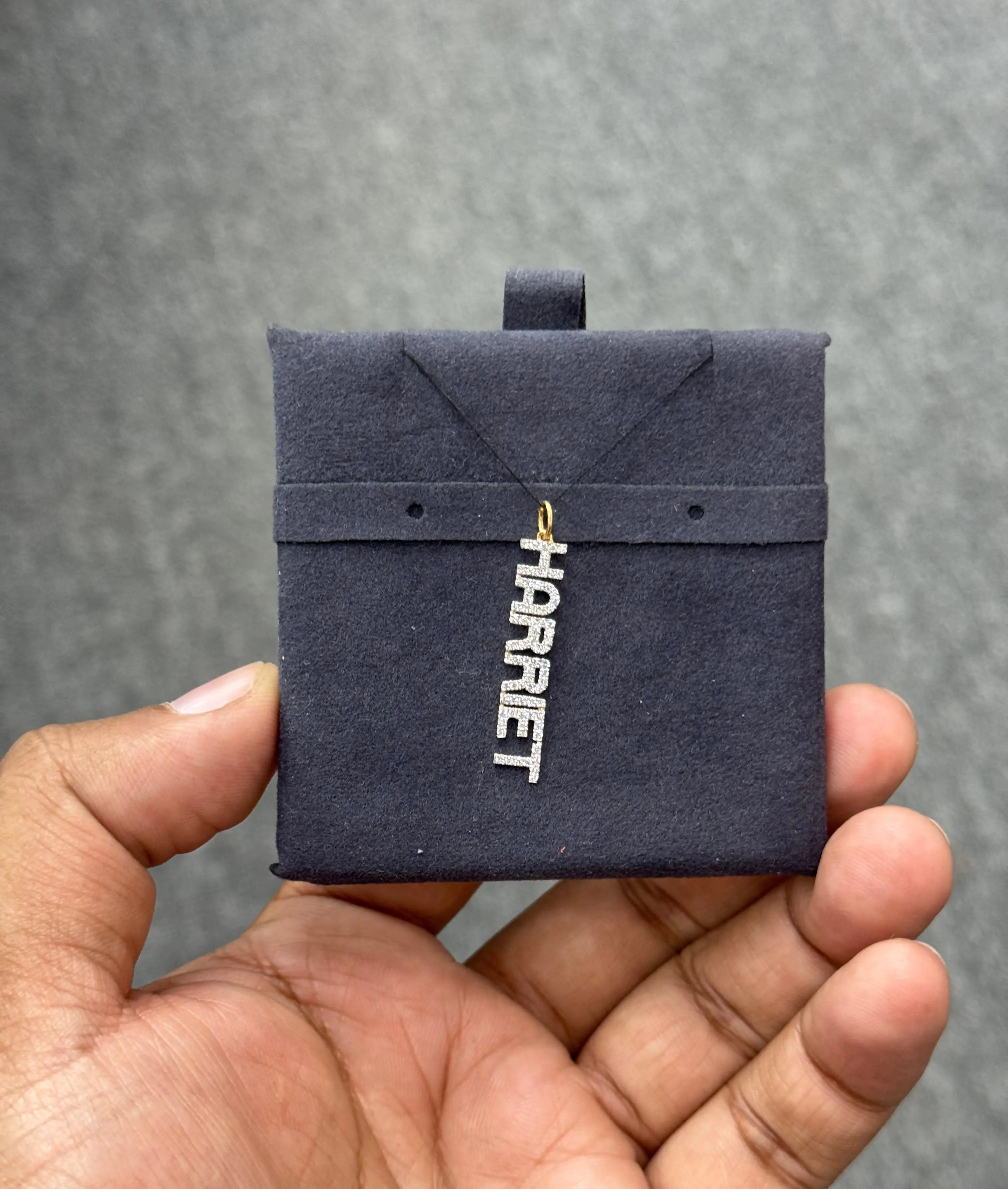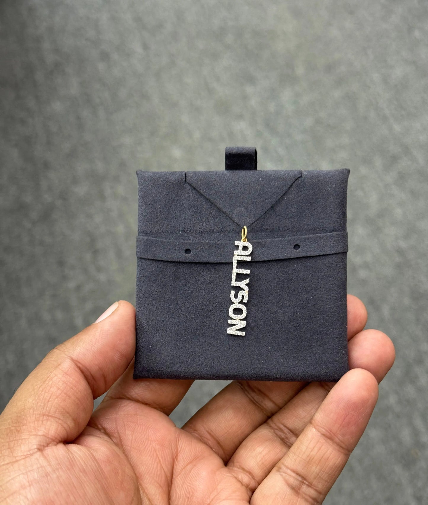 Make your name shine with our Diamond Pave Name Charm! This stunning custom charm features your name in dazzling diamonds set on fine 14k gold. A personal and luxurious addition to any jewelry collection. Discover elegance with our Diamond Pave Name Charm. Perfect for any occasion, this diamond pendant adds a touch of sparkle to your everyday jewelry collection.
