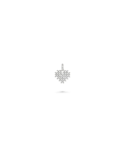The charm measures 12mm in length, creating delicate presence perfect for everyday wear. This sizing provides sufficient canvas for the geometric pattern and diamond placement without overwhelming when worn as pendant. The proportions ensure the architectural design is clearly visible and appreciable.