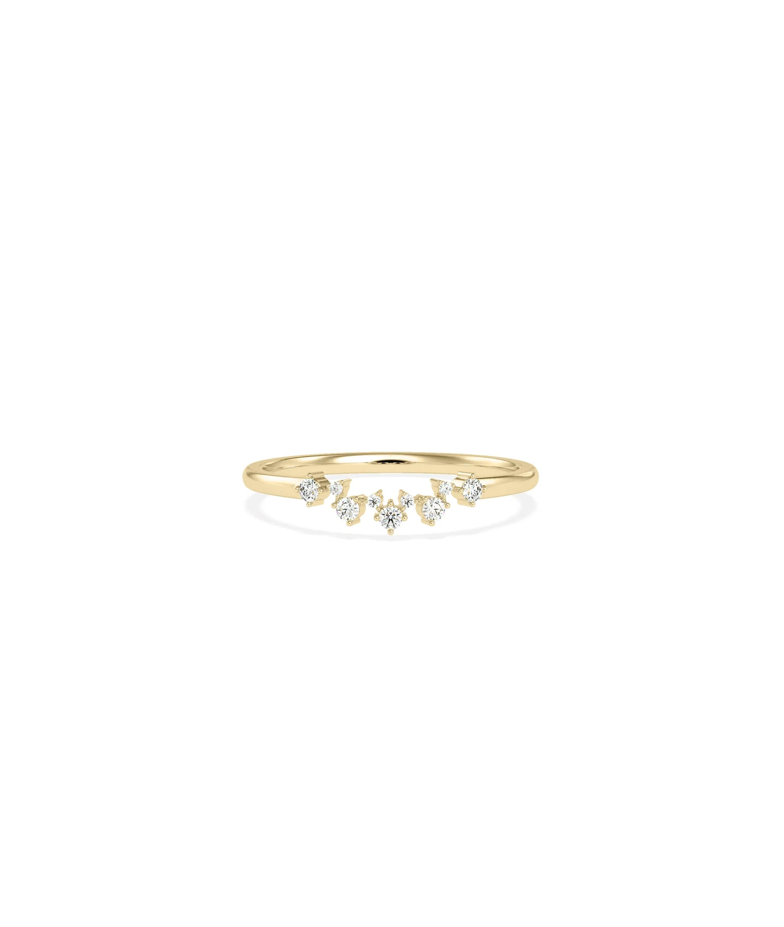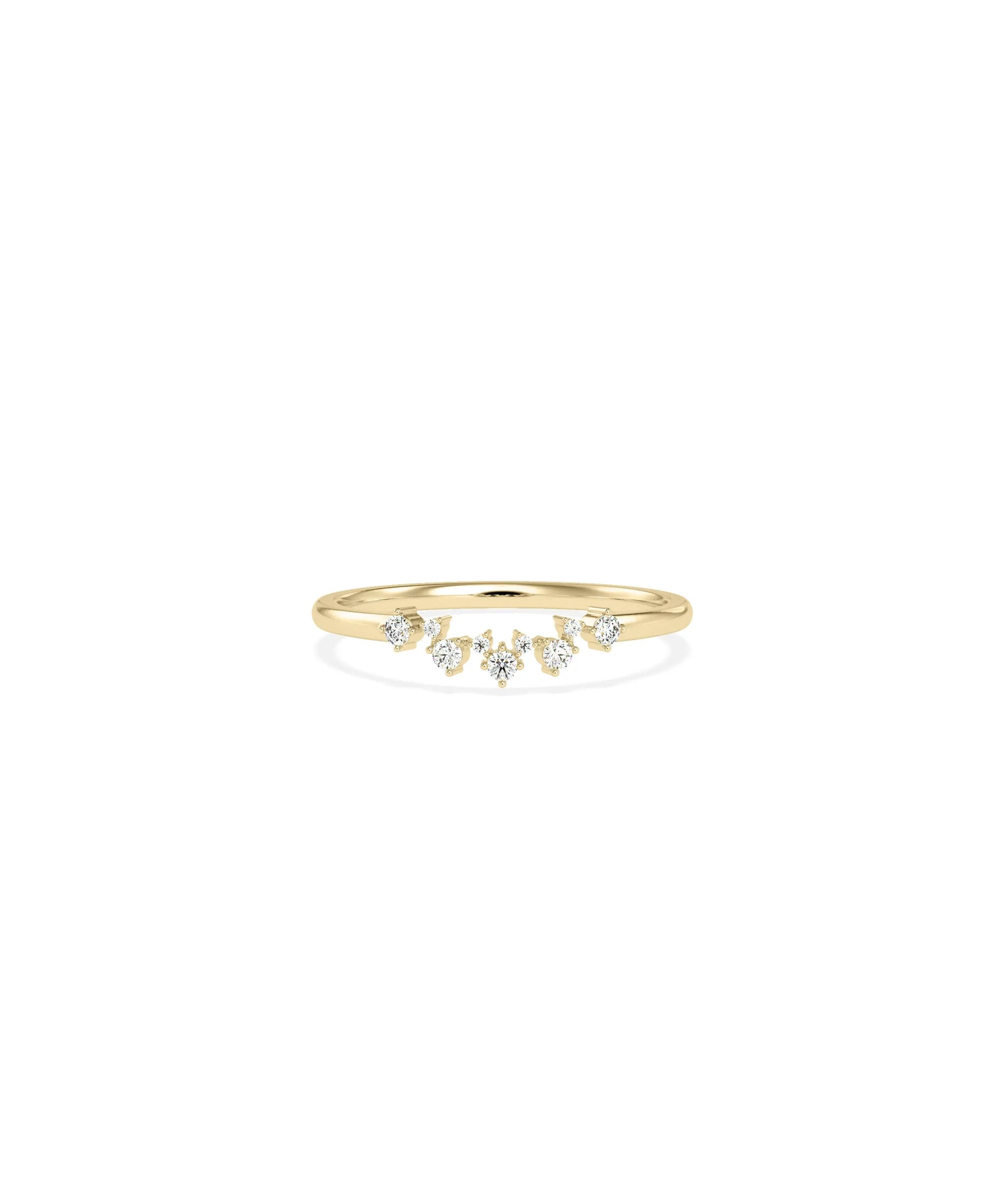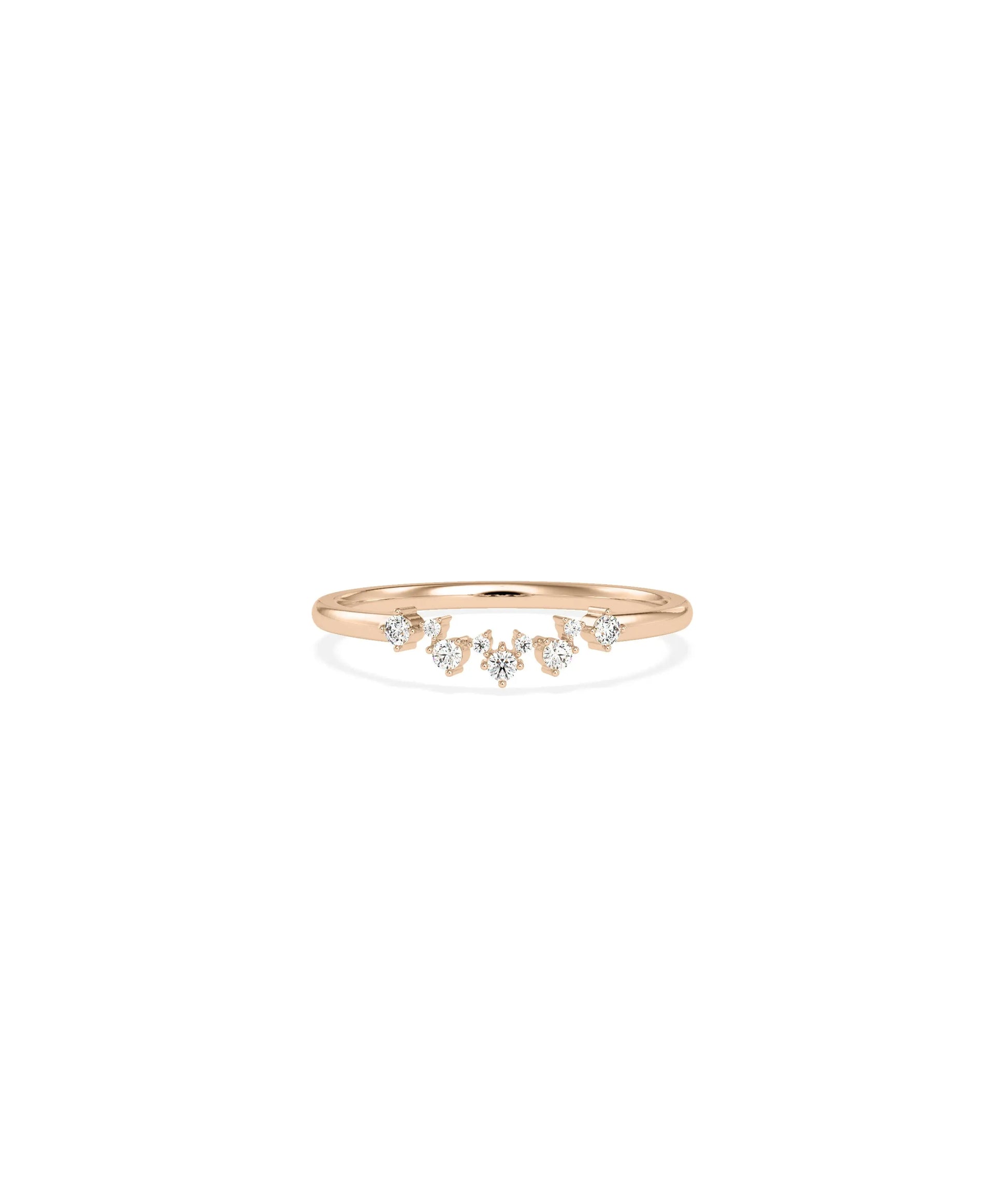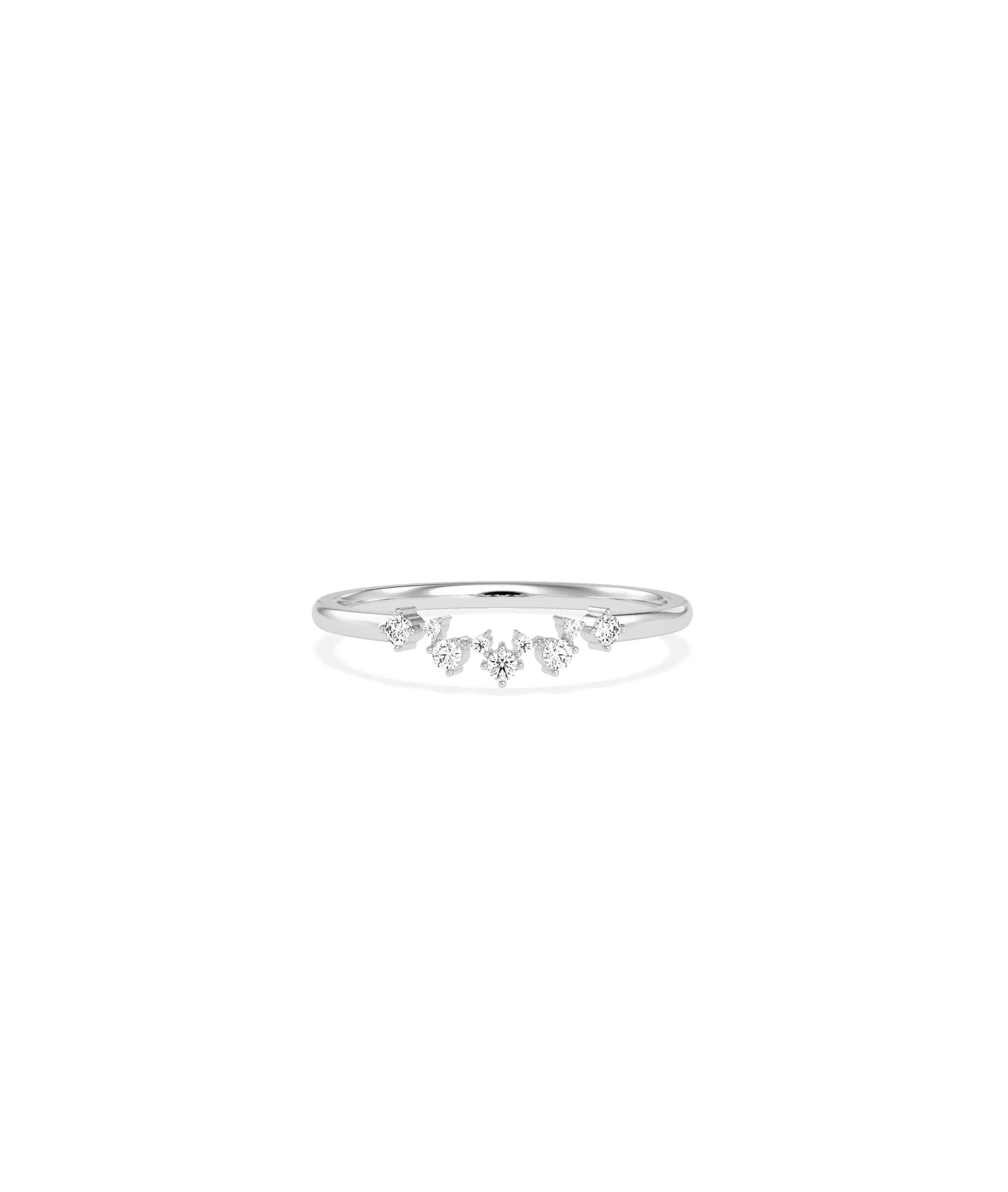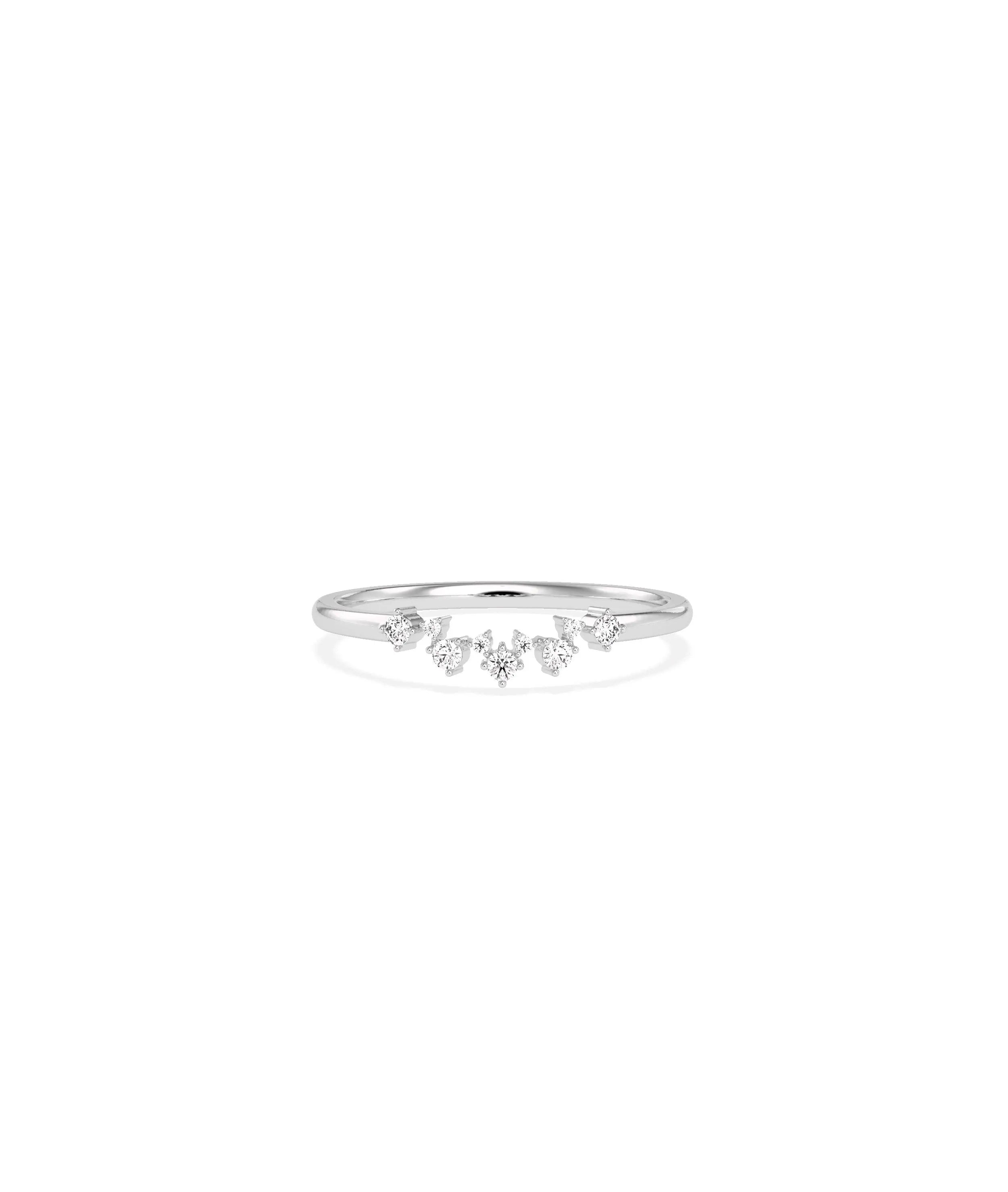 The Curved Diamond Band Ring is designed to nestle perfectly against engagement rings or solitaires, creating a seamless look. The contoured shape prevents gaps and provides comfortable fit without rings rubbing together.