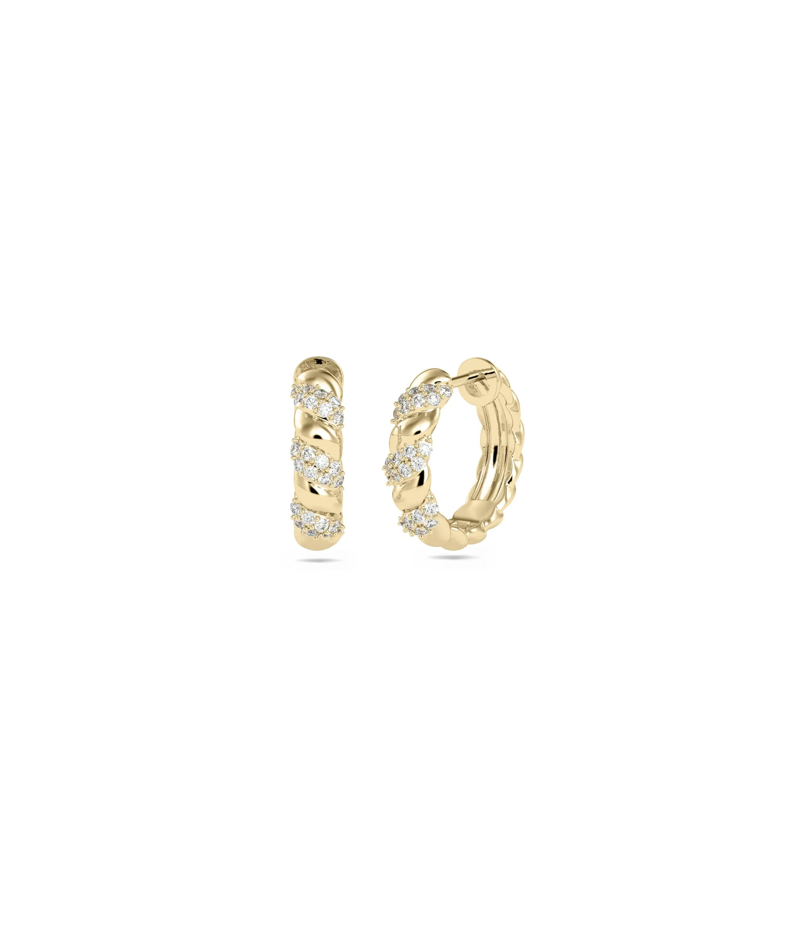 Shop our elegant Diamond Twist Hoop Earrings, perfect for everyday jewelry. Explore dazzling diamond earrings online that add a touch of sparkle to any outfit. These stunning earrings boast a unique twist design that adds a touch of elegance to any outfit. Made with high-quality diamonds, they're the perfect addition to your jewelry collection.