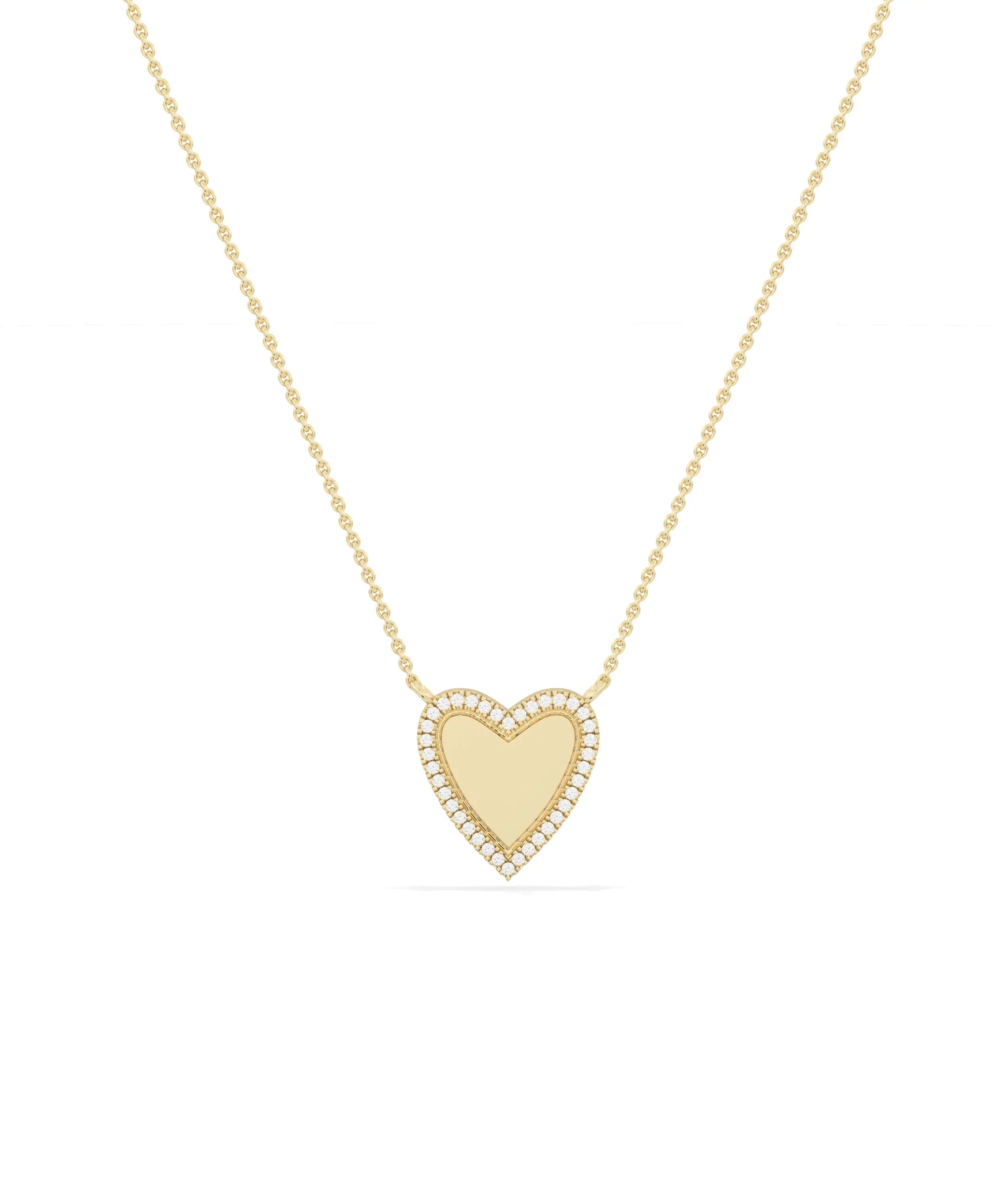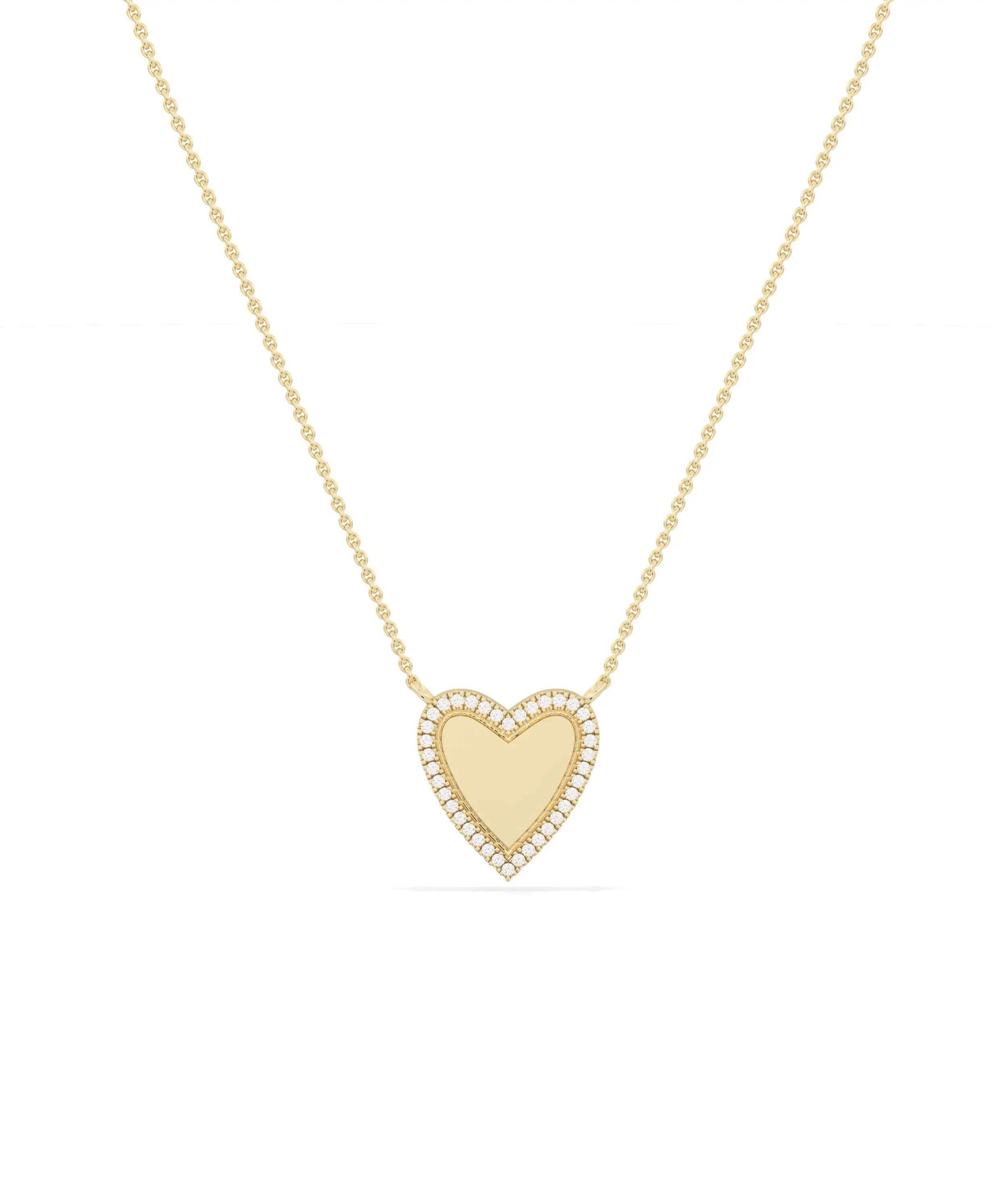 Diamond Halo Heart Necklace Personalized Engraved Sparkling Romantic