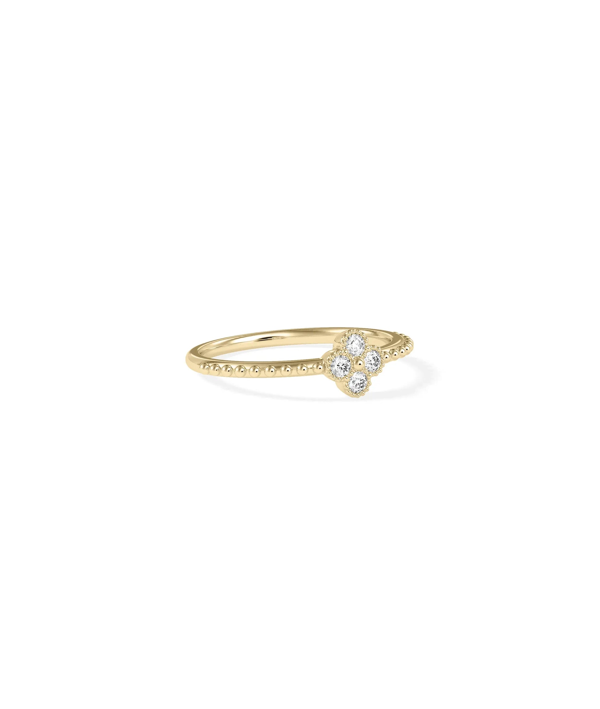 Diamond Clover Beaded Band Ring