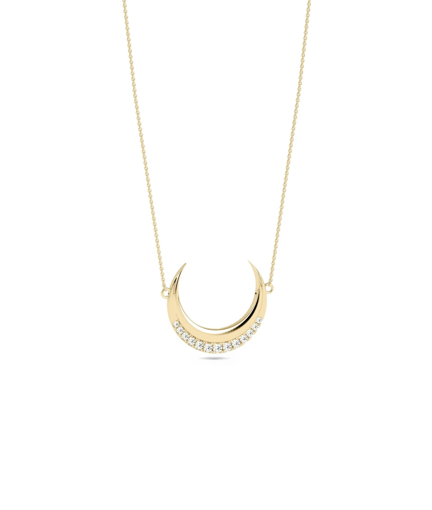 • Diamond Crescent yellow gold celestial mystical substantial elegant