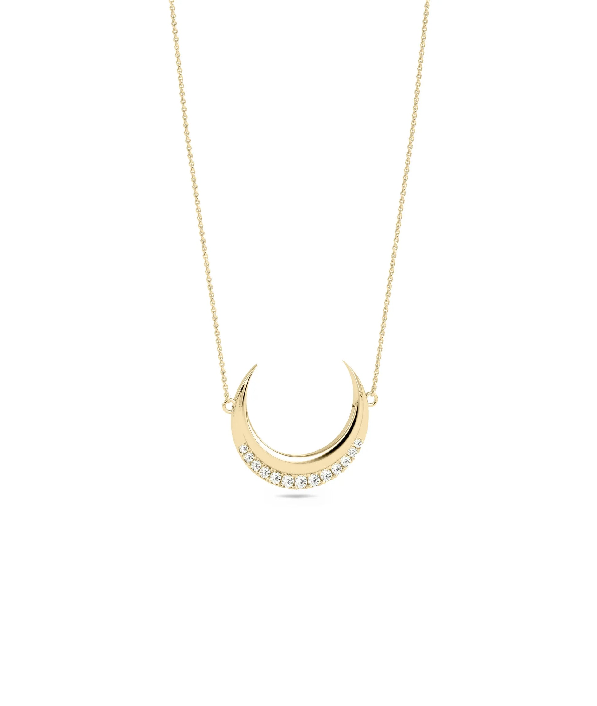 The crescent moon represents profound celestial symbol celebrating transformation new beginnings and cosmic cycles. This graceful lunar phase embodies growth renewal and connection to universe's rhythms creating spiritual cosmic presence. The Diamond Crescent Necklace honors this meaningful heritage through substantial 20mm form elevated by diamond coverage creating sparkling expression of cosmic beauty with sophisticated elegant meaningful celestial beautiful symbolic mystical presence celebrating transformation with refined elegant meaningful substantial celestial mystical lunar cosmic spiritual character expressing cosmic connection beautifully eloquently substantially through timeless profound powerful celestial mystical meaningful lunar transformative cosmic spiritual elegant refined substantial beautiful symbolic character celebrating moon's transformative power magnificently substantially throughout.
