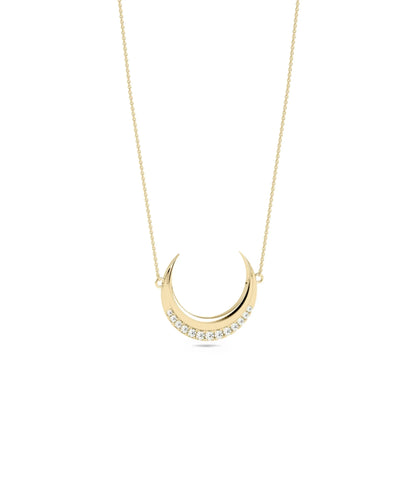 The Diamond Crescent Necklace celebrates celestial beauty with elegant sparkle. Featuring a graceful 20mm crescent moon adorned with 0.20 carats of diamonds in solid gold, this piece delivers lunar symbolism with sophisticated brilliance. The substantial curved form enhanced by one-fifth carat diamond embellishment creates distinctive jewelry expressing celestial wonder with dazzling refined elegant style and meaningful mystical presence perfect for those appreciating cosmic symbolism with luxurious sparkling beauty and substantial dramatic lunar celestial mystical character celebrating moon's grace beautifully.
