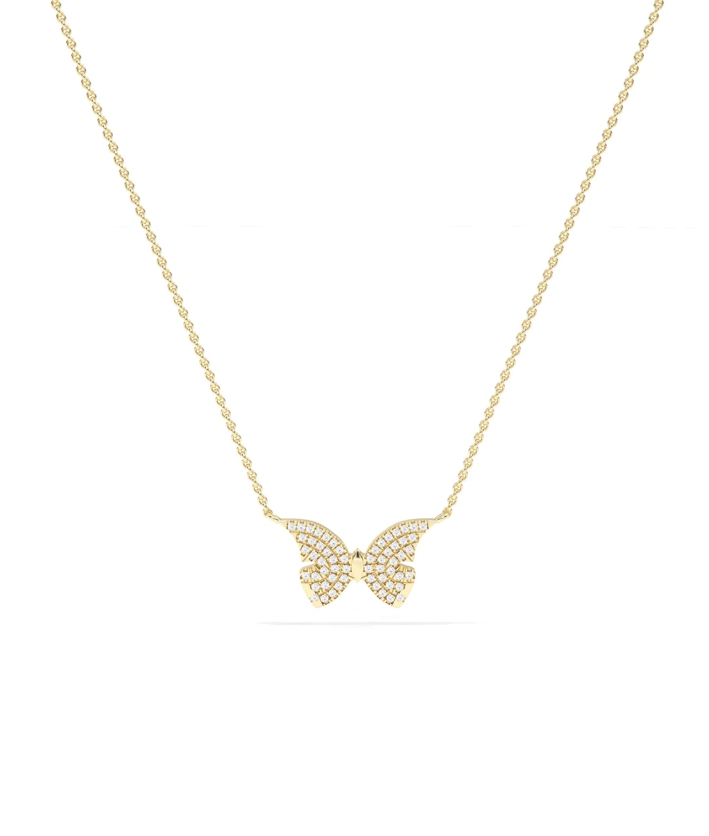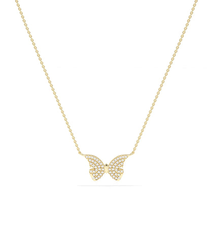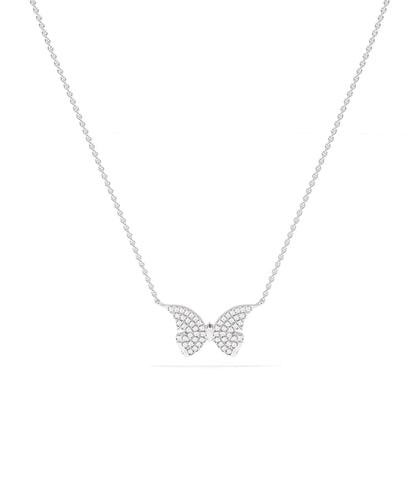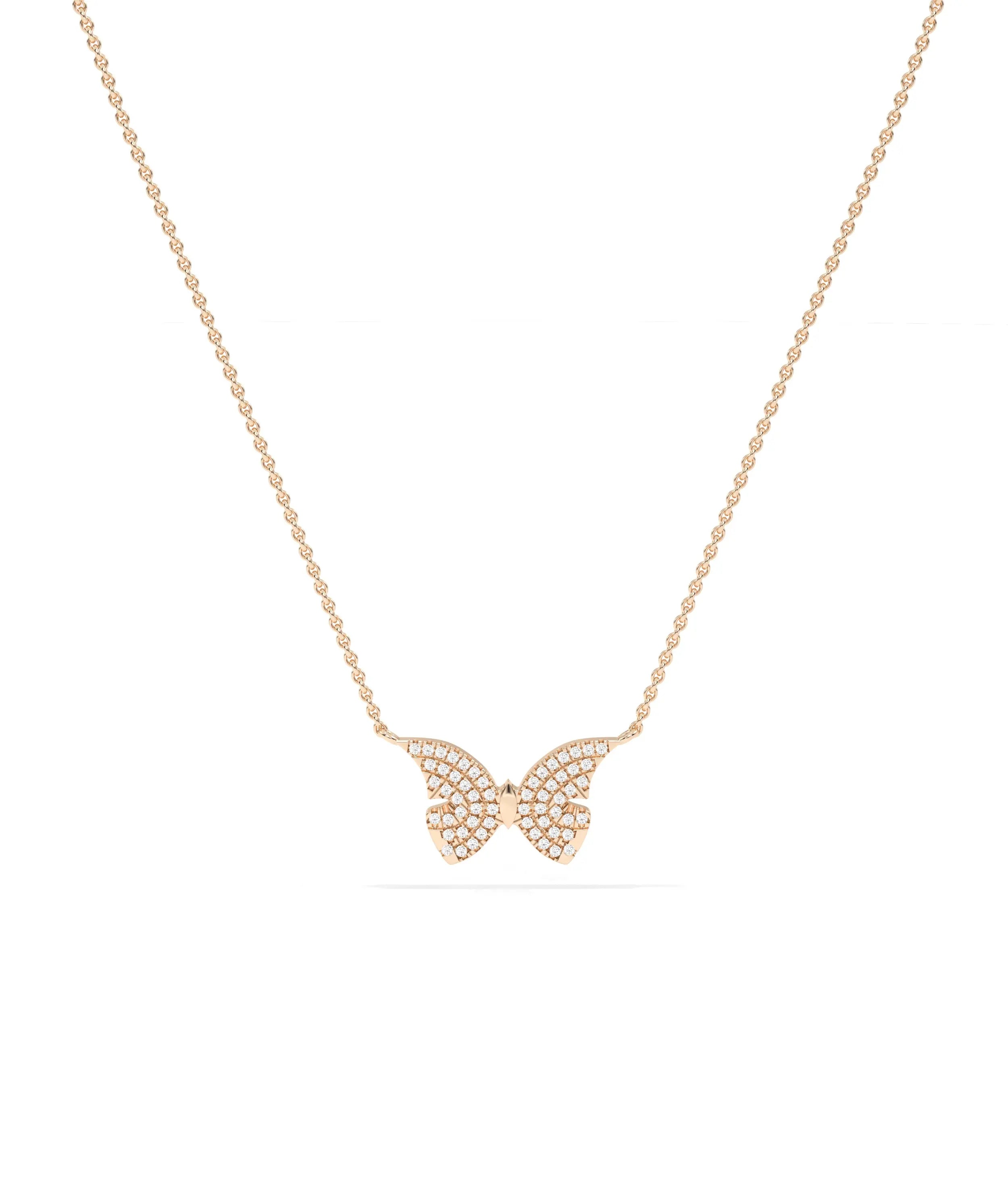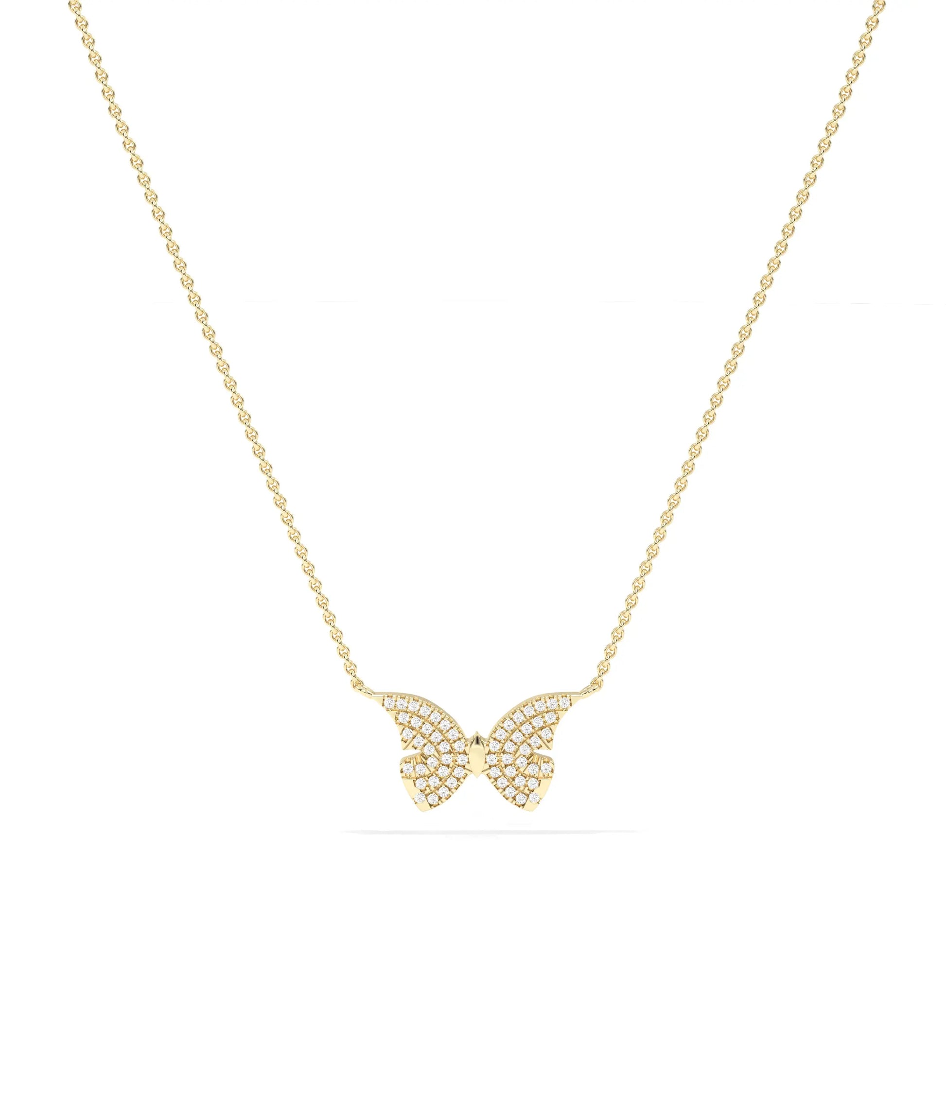 Butterflies represent transformation, freedom, rebirth, and natural beauty. These enchanting creatures symbolize resilience and life's positive changes. The Diamond Pave Butterfly Necklace incorporates this uplifting imagery celebrating personal growth and renewal. Wearing butterfly jewelry expresses embracing change, celebrating new beginnings, or connection to nature's delicate grace with sophisticated elegant meaningful transformative beautiful symbolic presence and inspiring uplifting cherished natural symbolic style.