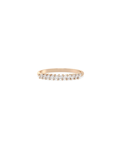 The Marquise Diamond Band Ring measures 1.2 mm in band width, creating ultra-delicate elegance. This slender width allows the distinctive marquise diamonds to take center stage while maintaining comfortable, lightweight proportions perfect for refined, feminine styling and everyday wear or stacking.