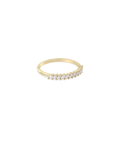 Featuring 0.25 carats of marquise diamonds, this Marquise Diamond Band Ring creates the optical illusion of longer, more slender fingers. The elongated cut visually extends the finger line while the linear arrangement enhances this flattering effect, offering sophisticated elegance with graceful proportions.
