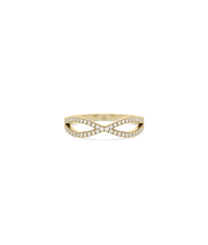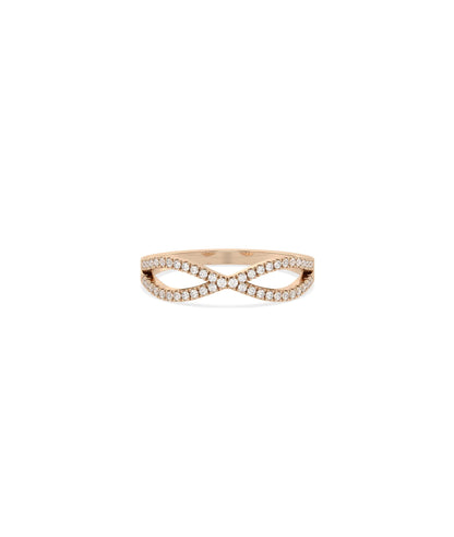 Featuring 0.20 carats of diamonds, this Criss Cross Diamond Ring adorns the crossing bands with beautiful sparkle. The diamond coverage enhances the X-shaped design, creating brilliant radiance that catches light from multiple angles as the interlocking strands wrap elegantly around your finger.