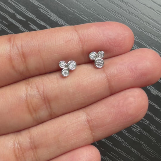 • 3 Stone Diamond Stud Earrings - 79e | Everyday 14K Gold Jewelry