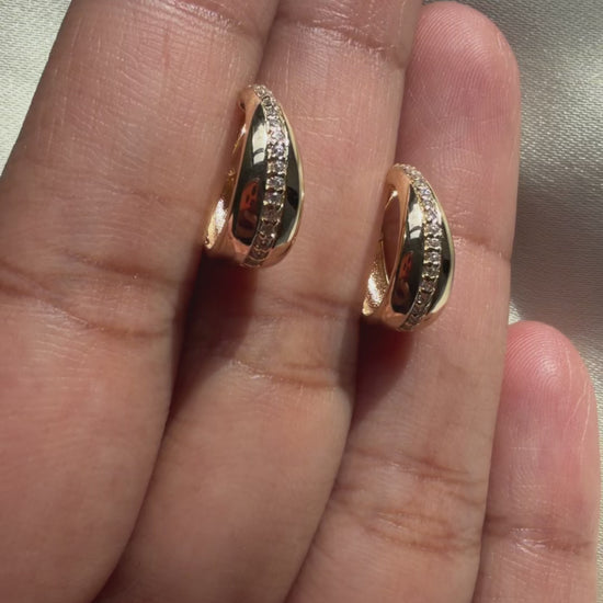 Get ready to dazzle with our Diamond Line Dome Hoop Earrings! The perfect combination of a classic hoop and a modern dome design, these earrings are sure to add a touch of elegance to any outfit. Elevate your everyday style with our diamond line dome hoop earrings. These stunning earrings feature a modern design and a touch of luxury. Shop now
