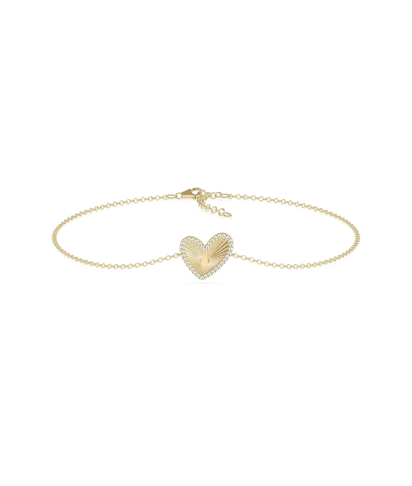 Unveil the elegance of our Diamond Outline Heart Cable Chain Bracelet. This stunning gold bracelet for women combines sophistication with a touch of sparkle, perfect for any occasion. Our Diamond Outline Heart Cable Chain Bracelet is the perfect way to show your love. Featuring a delicate heart-shaped charm with a diamond outline and a trendy cable chain, this bracelet is a must-have accessory.