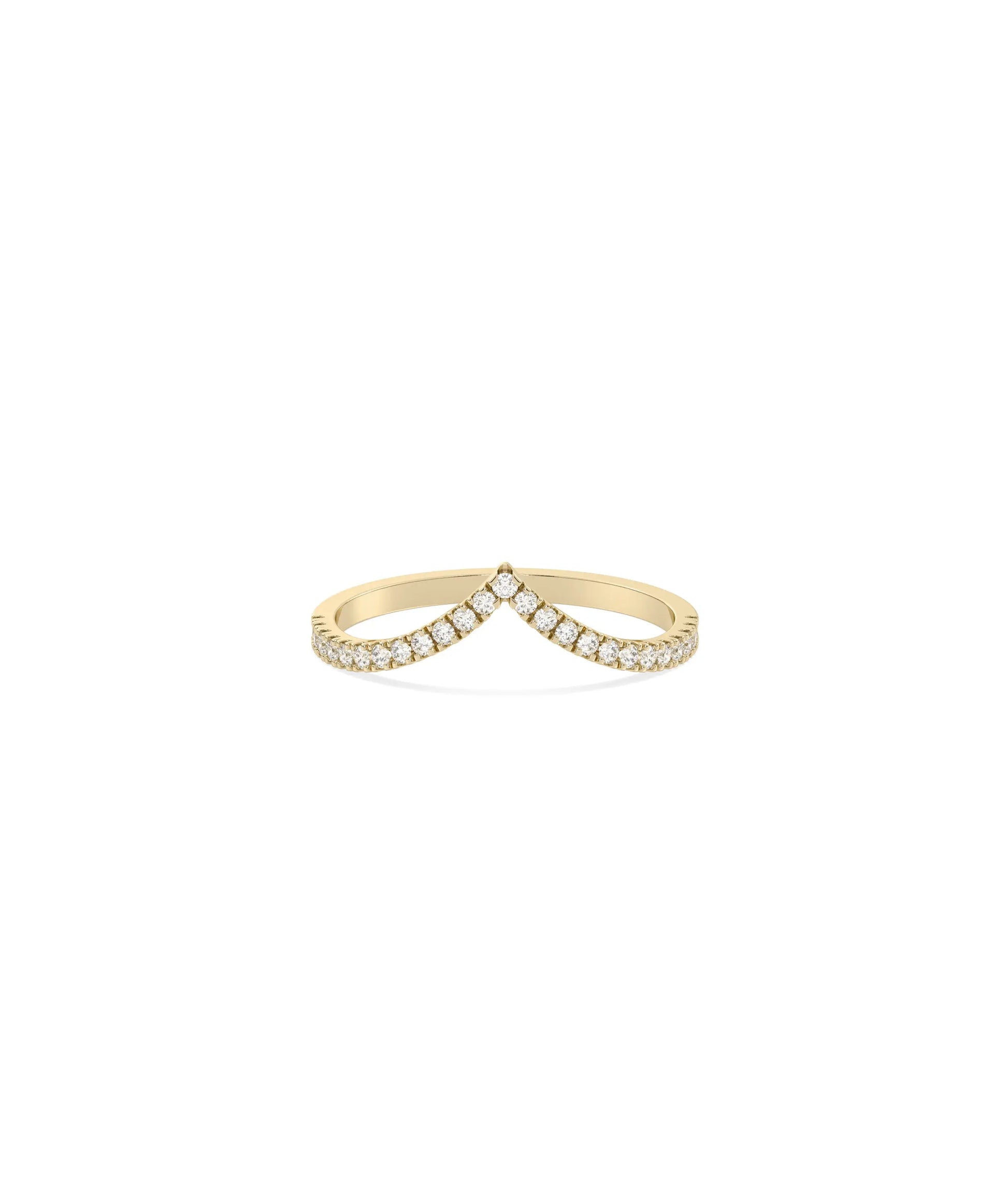 Absolutely! The Diamond Chevron Band Ring's 1.6 mm width and V-shaped design make it perfect for stacking. The chevron pattern creates interesting directional geometry when layered with straight bands or nested with other chevrons, allowing personalized combinations with contemporary, dimensional styling.